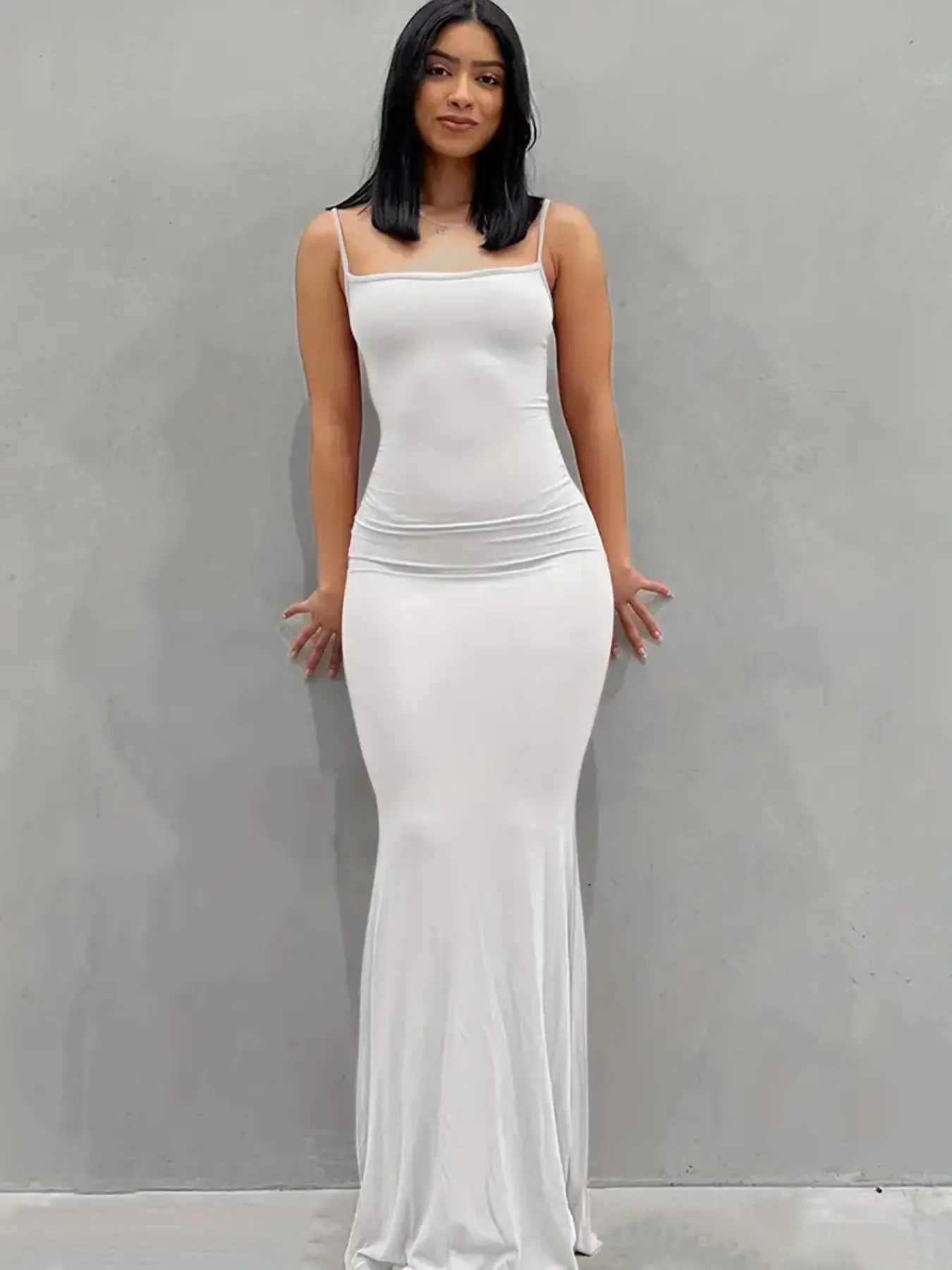 I loveeee this dress I’m buying all colors 🩵 I’m wearing a small and I’m 137 lbs….its long I’m 5’5 and it covers my feet for the most part, it has a lot of stretch also, 10/10 i recommend ladies ✨