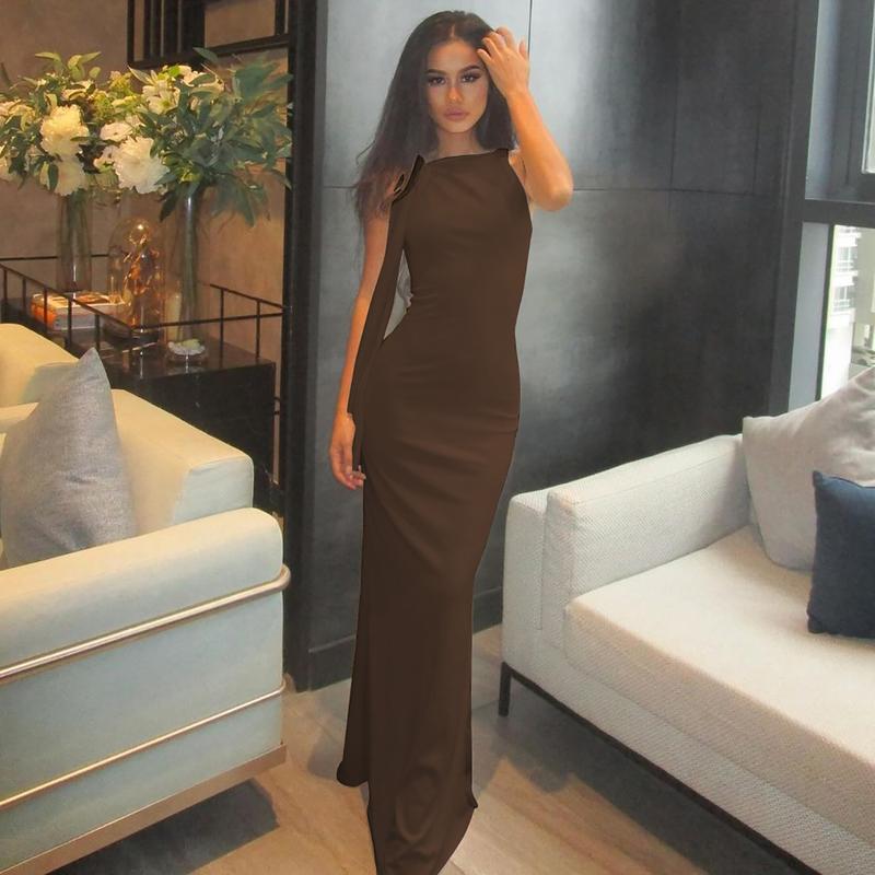 Knotted One Shoulder Mermaid Dress Women's 2025 Summer & Fall New Sleeveless Maxi Bodycon Dress for Ladies Evening Party Club Dating Elegant Dresses Clothes Outfits