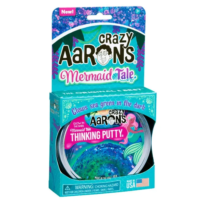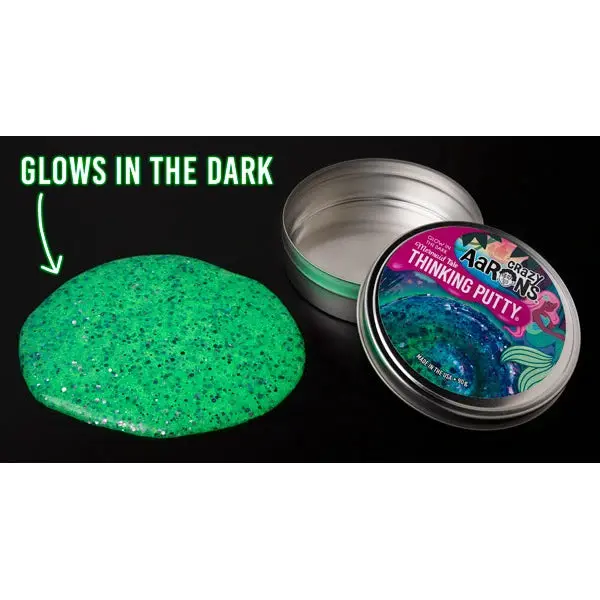 🔧 Stretchable, Tearable, Bouncy Fun 🔧 This fidget toy is every bit as fun as Crazy Aaron's other putties. It's perfect for all hands on deck. When you open a tin of Mermaid Tale Glow in the Dark Putty, everyone will want a turn. The tin packaging adds to the excitement, making it a delightful surprise for any occasion. Dive into the fun and let the magic of the ocean unfold!