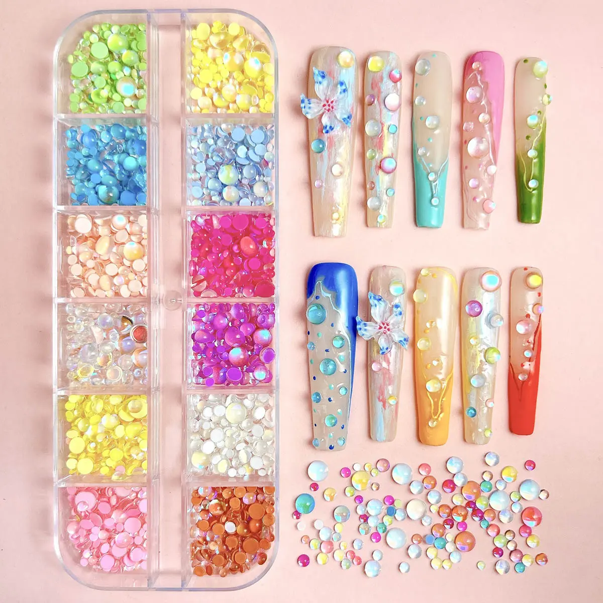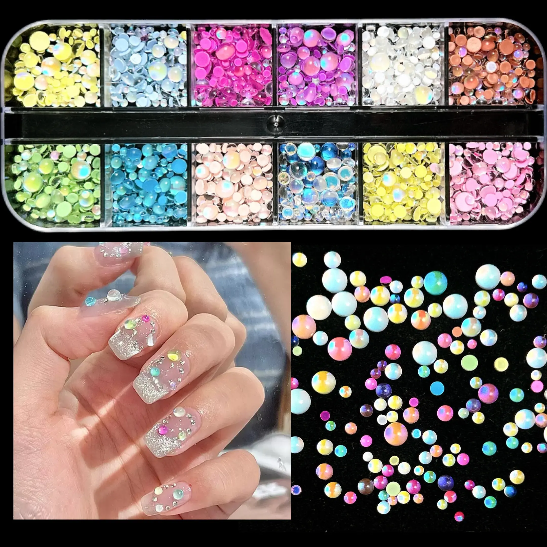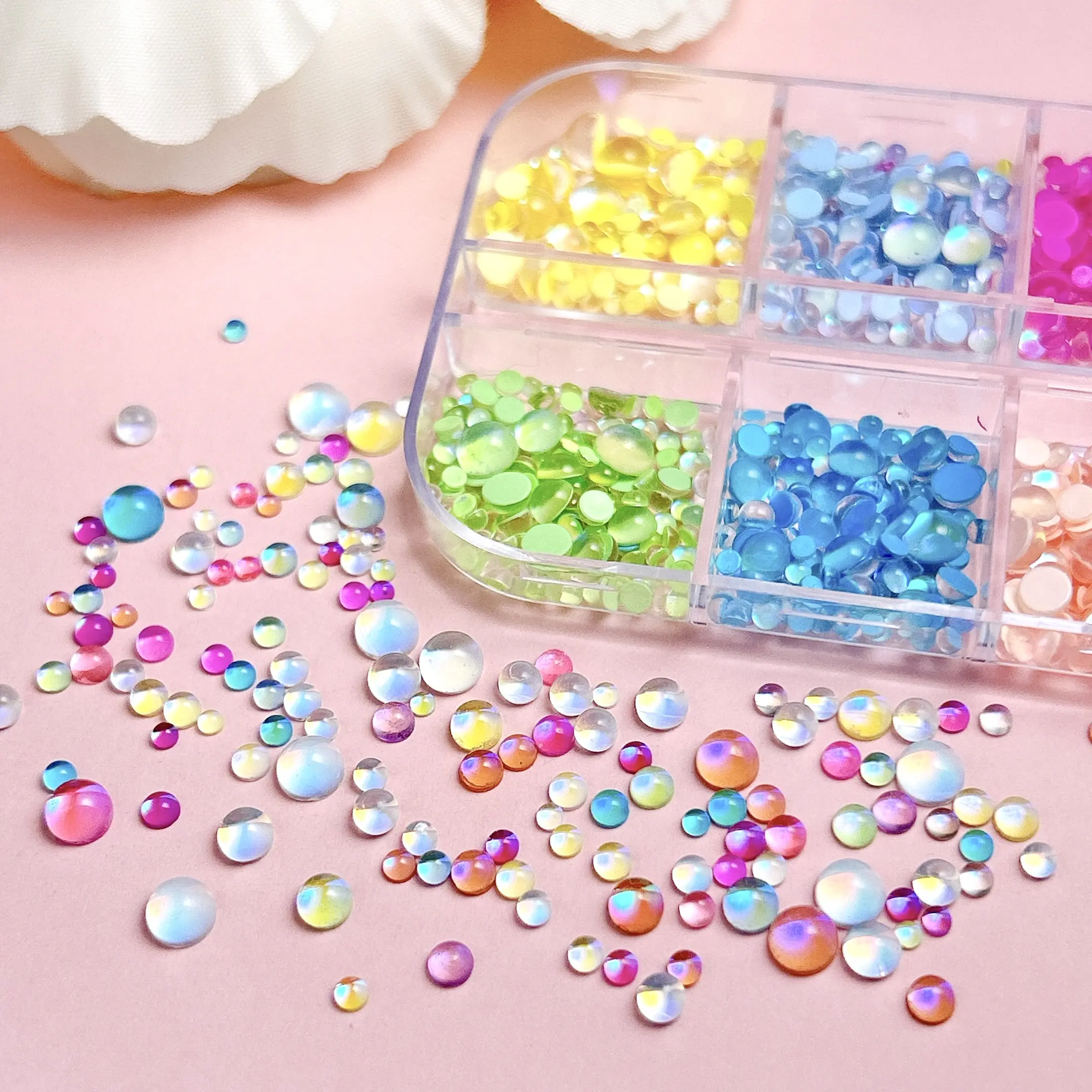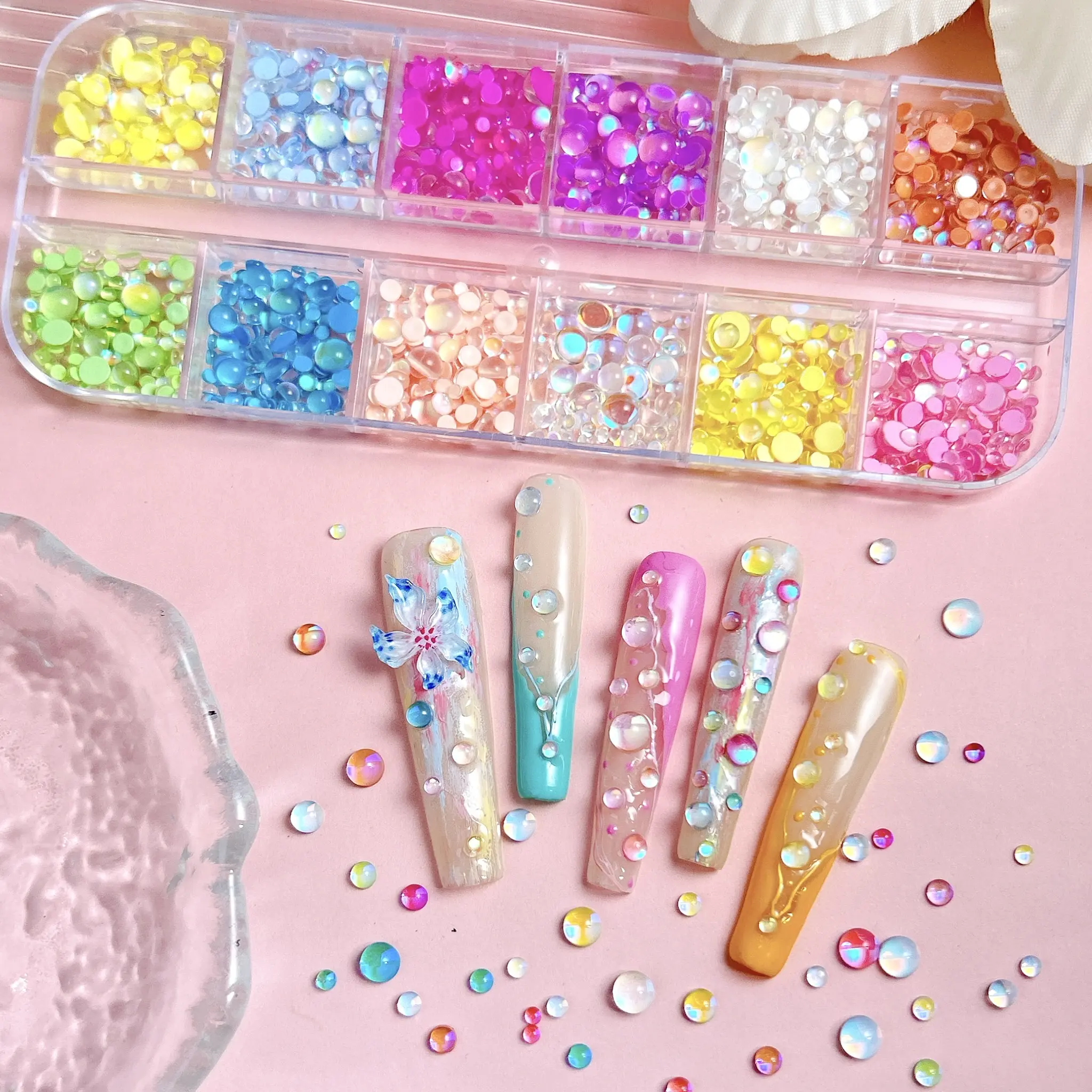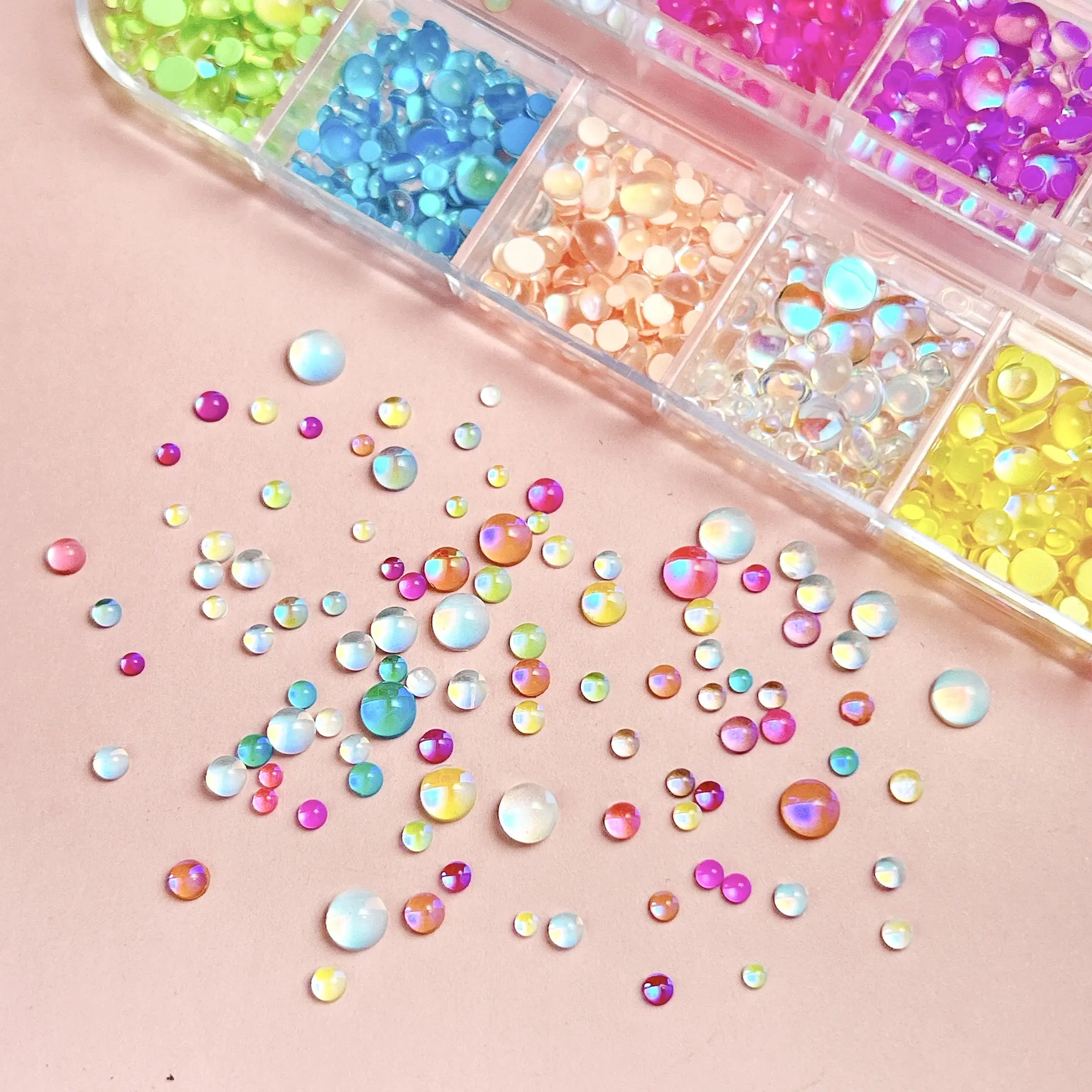 4. 1Box Novelty Creative Translucent Mermaid Tear Bead Nail Charms Multiple Colors Flat Bottomed Bubble Bead Nail Art Decorations for Women DIY Pnene Case Nails Crafts