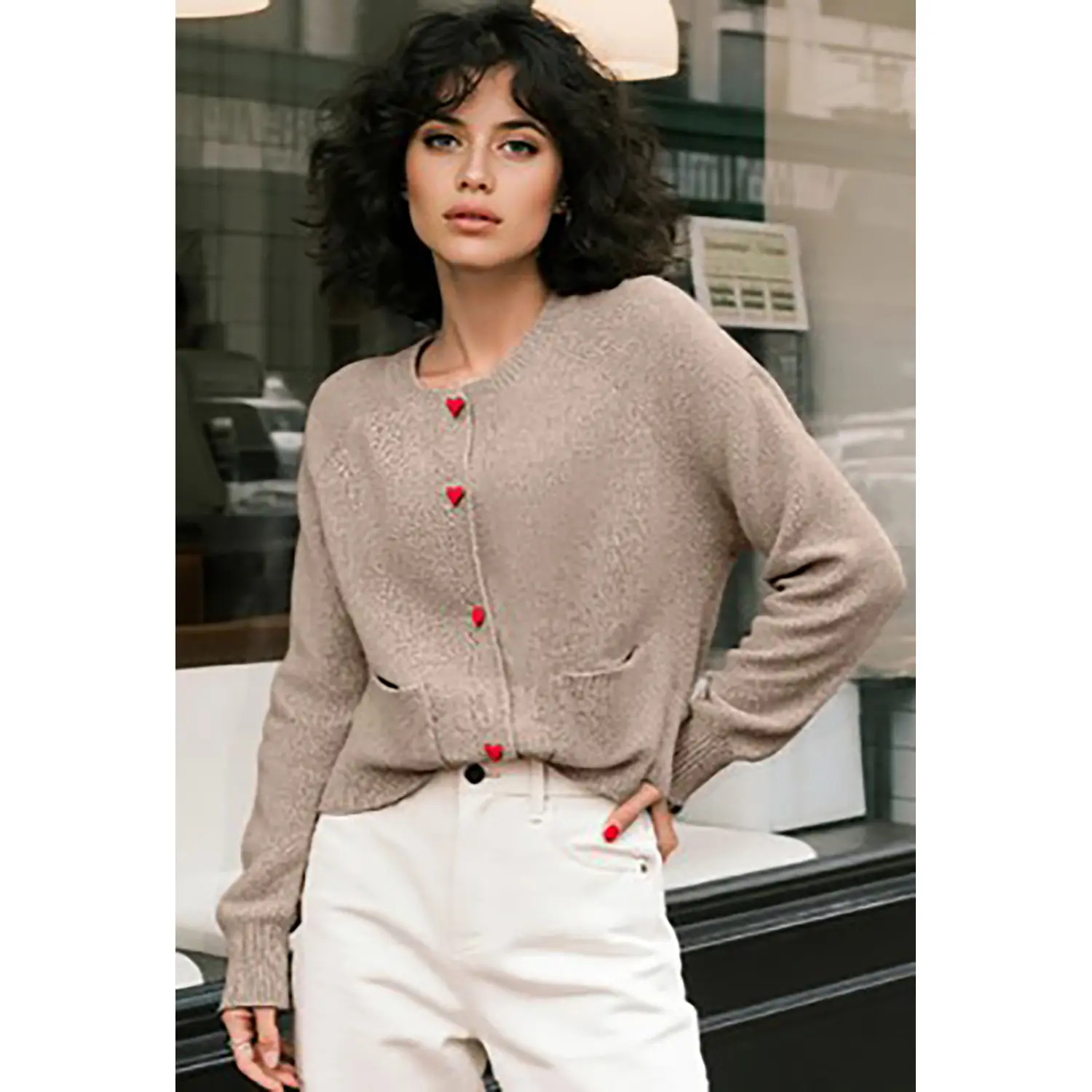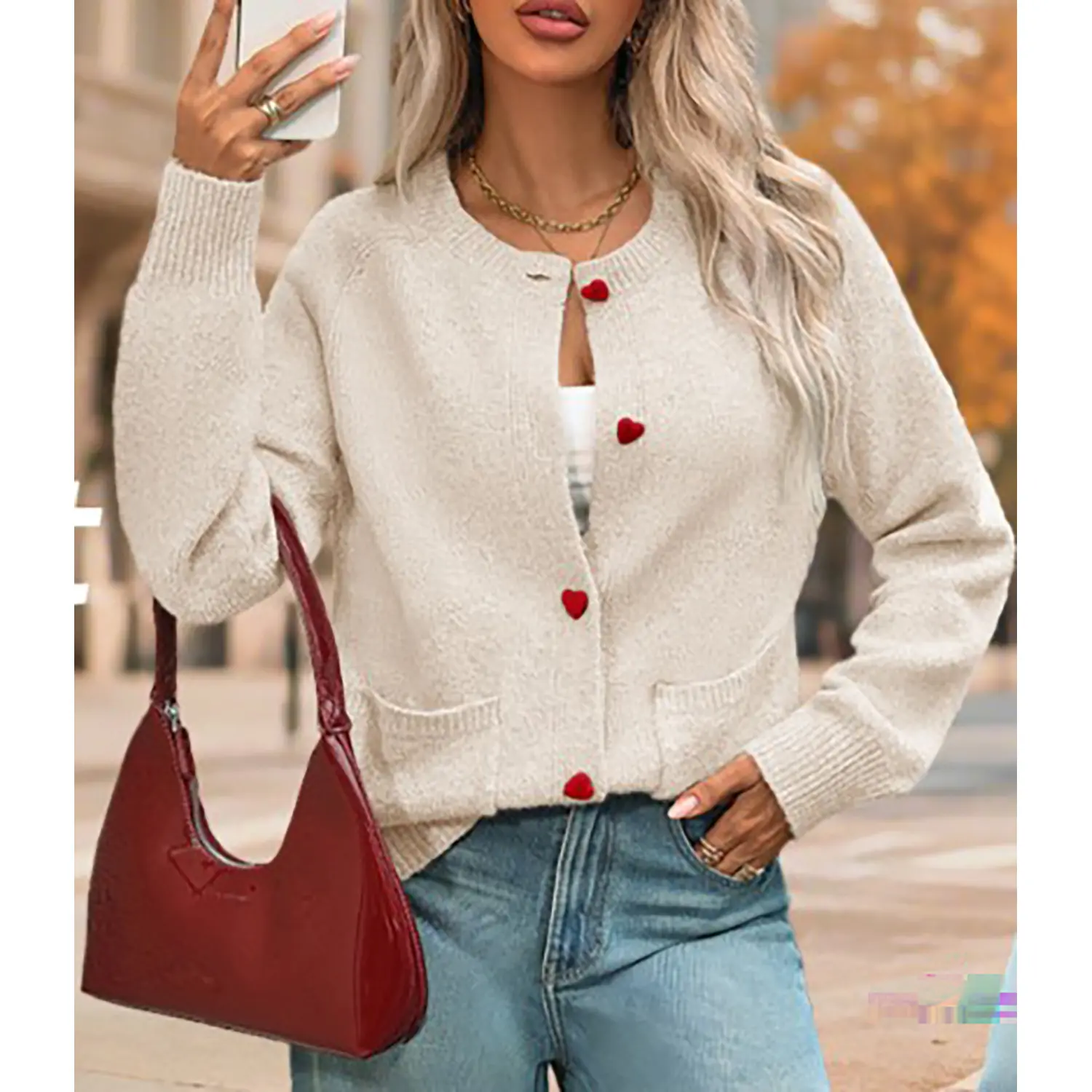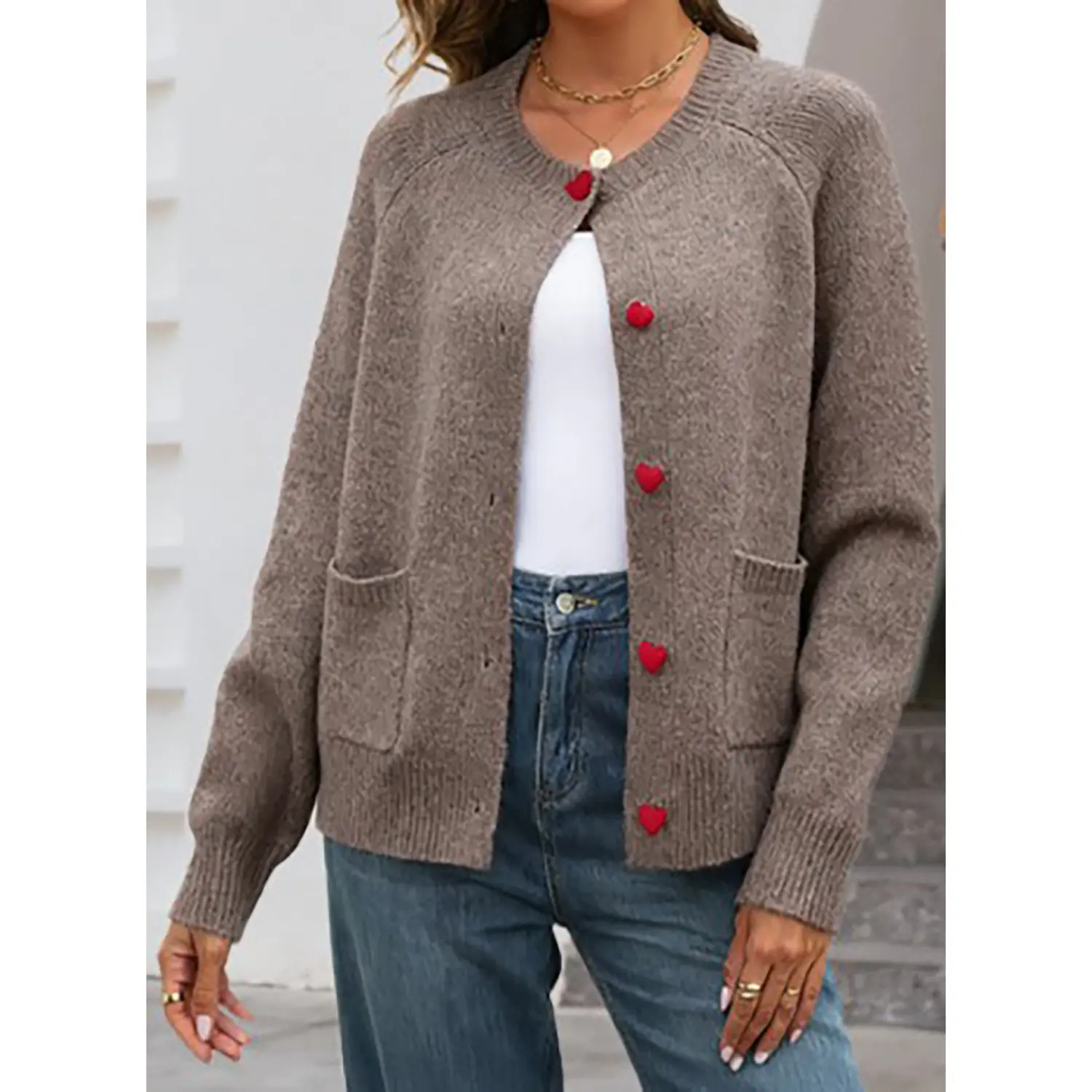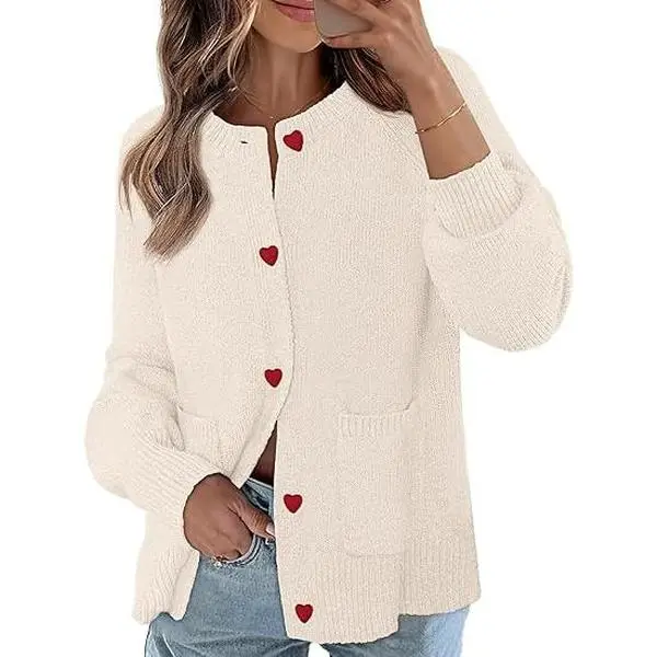 ·Features: Our chunky cardigan sweater is adorned with crew neck, heart-shaped buttons adding a touch of sweetness and playfulness to the overall look, long sleeve, open front, contrast color, hip-length design, two front pockets, ribbed hemline and cuffs, cozy sweaters, cute outfits for women 2025, winter fashion clothing