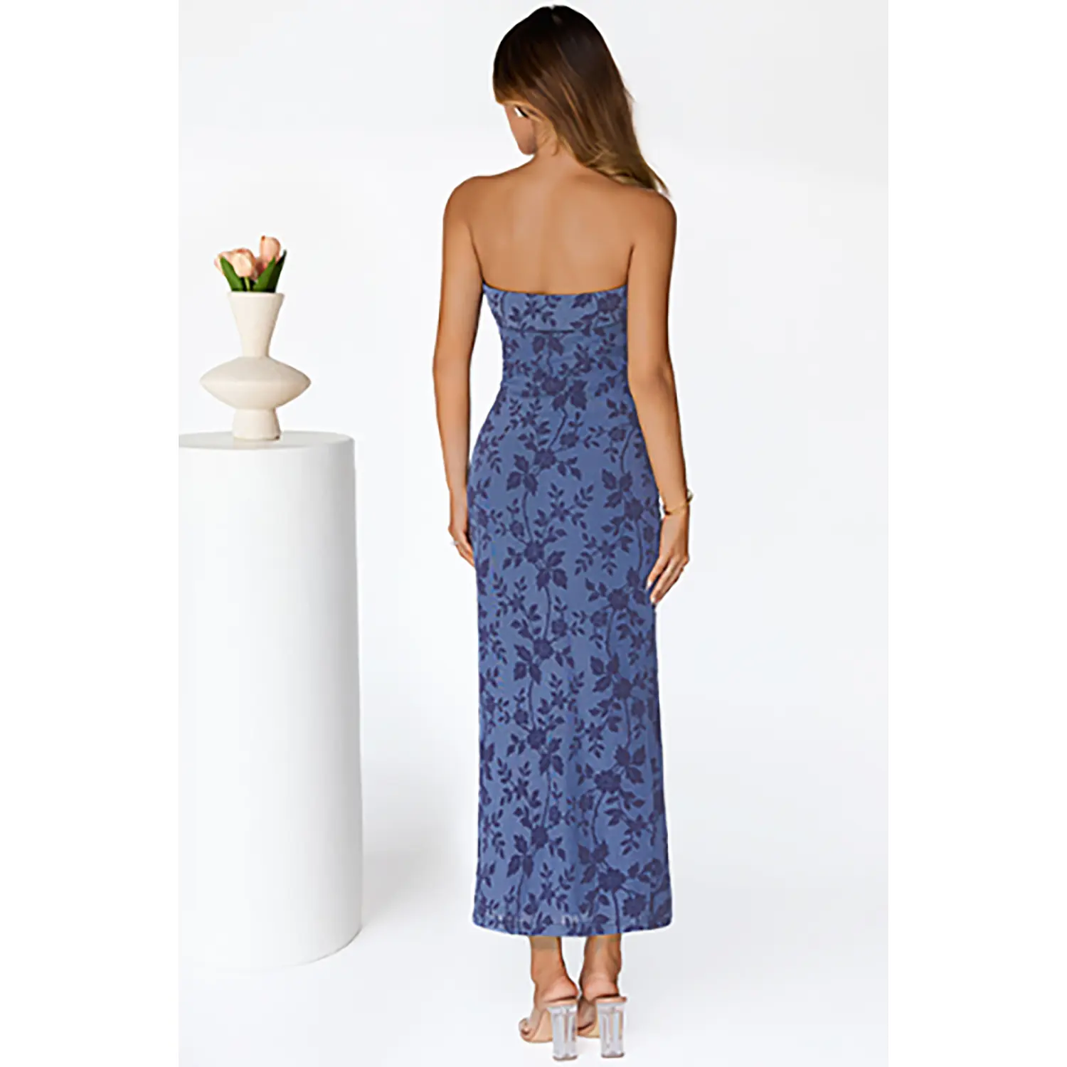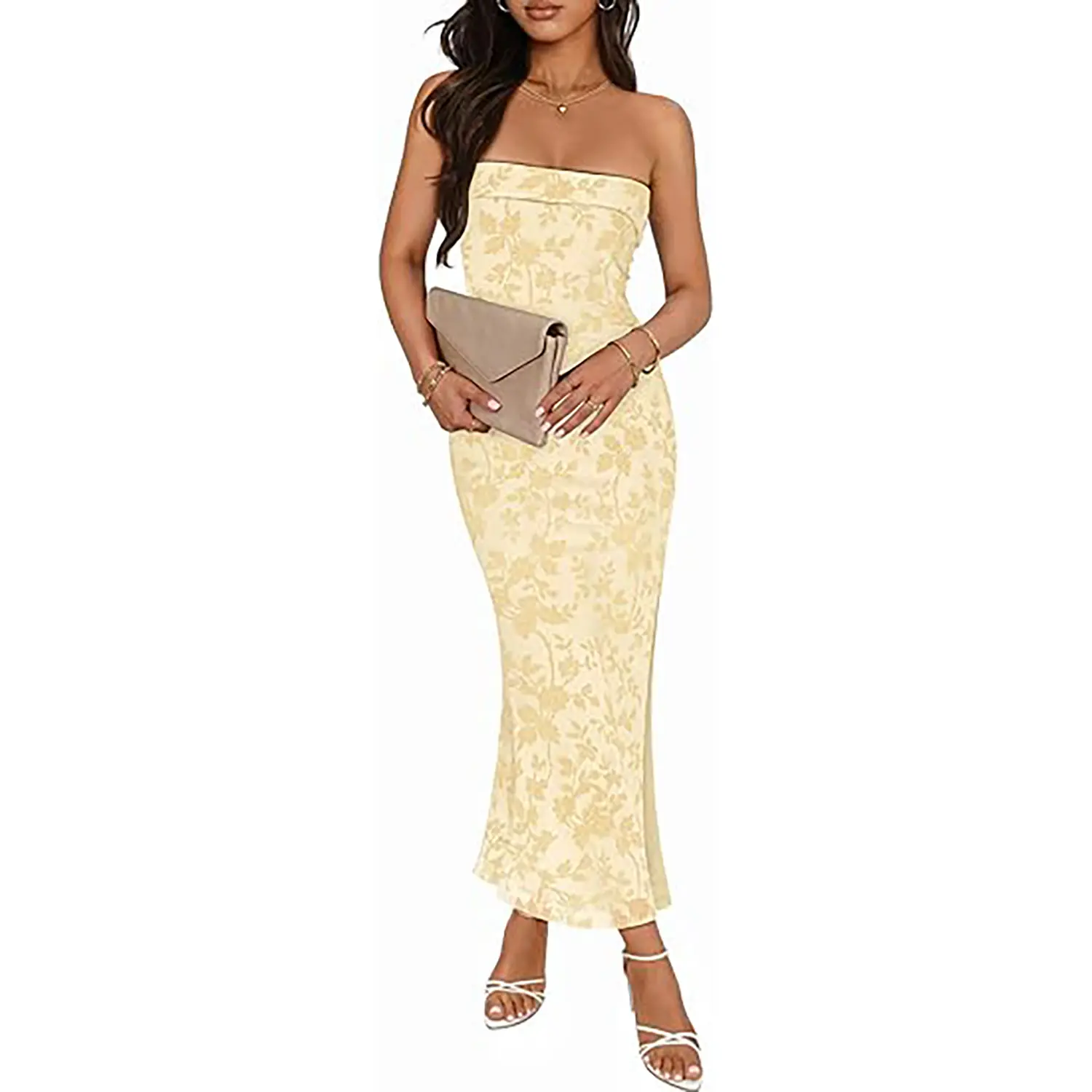 ·Size and Material: Regular fit. S=US 4-6, M=US 8-10, L=US 12-14, XL=US 16-18. Please check the size chart carefully before purchase. Designed in a floral-print jacquard mesh, this strapless long dress offers a comfortable fit that feels lightweight, breathable, and gently stretchy against your skin