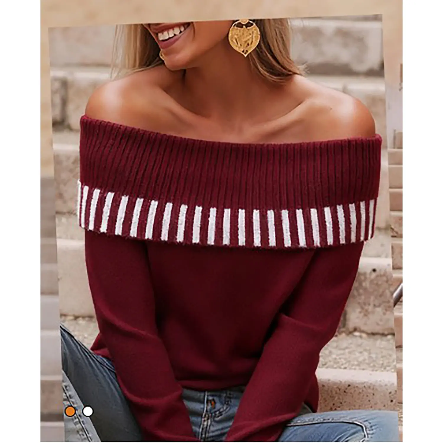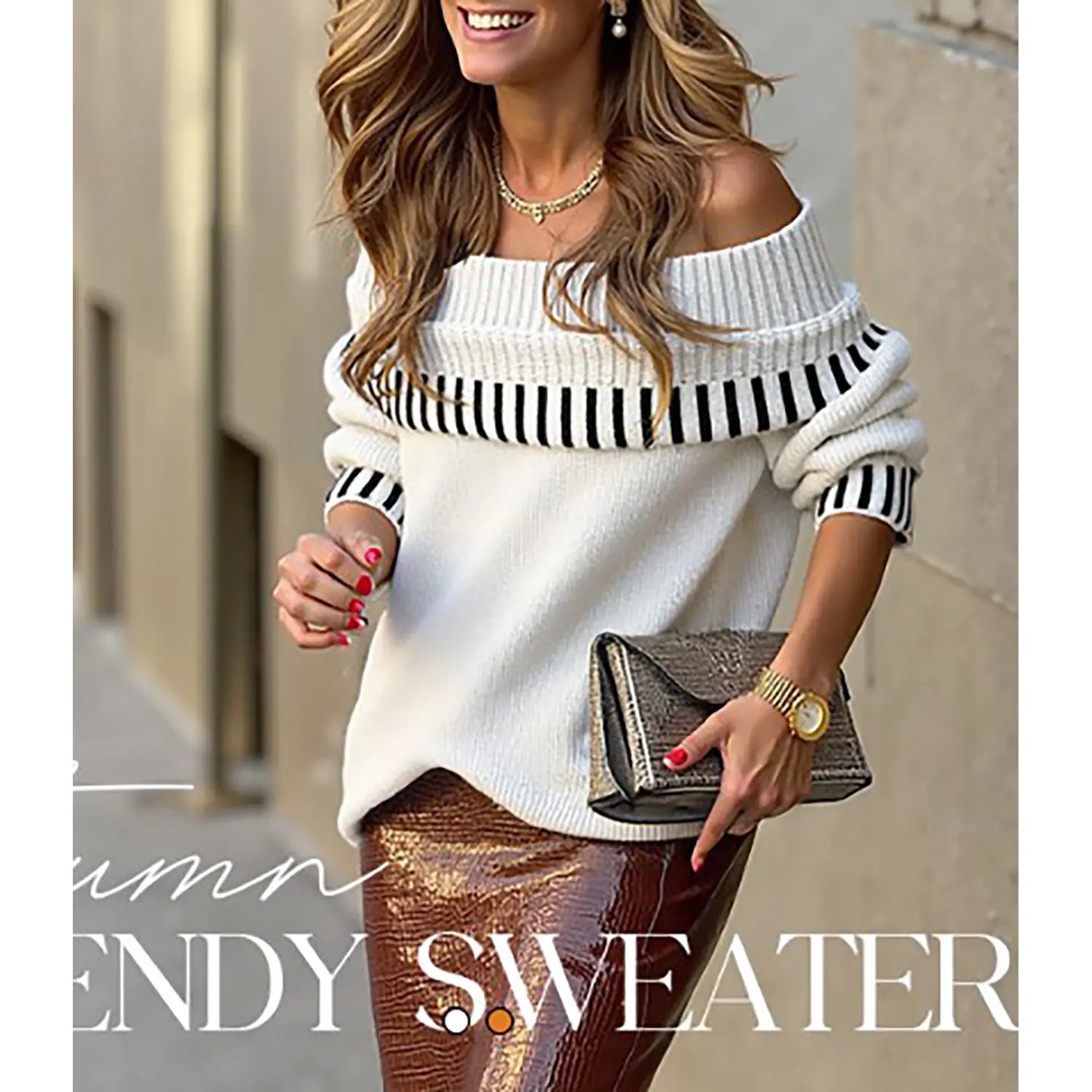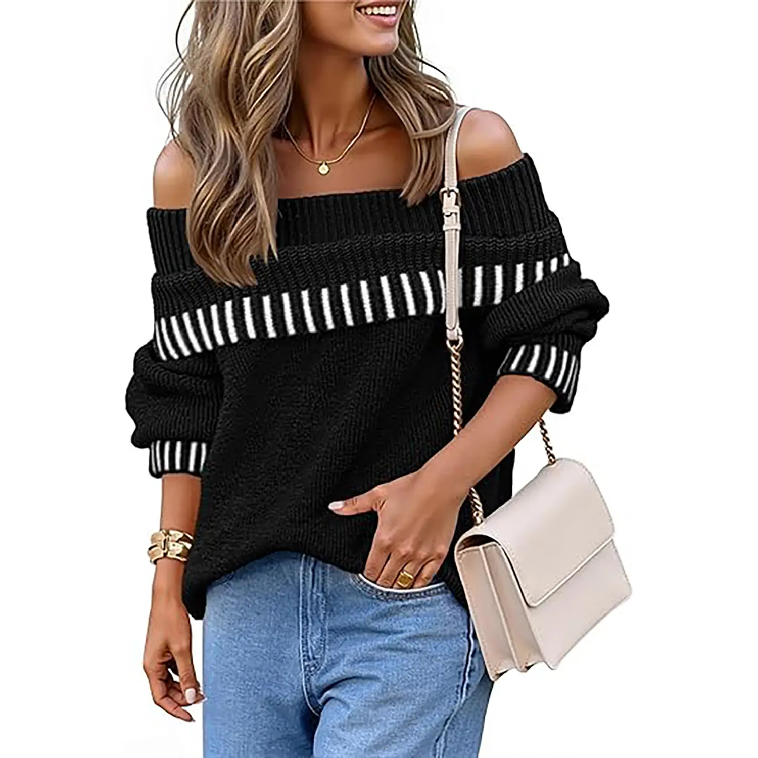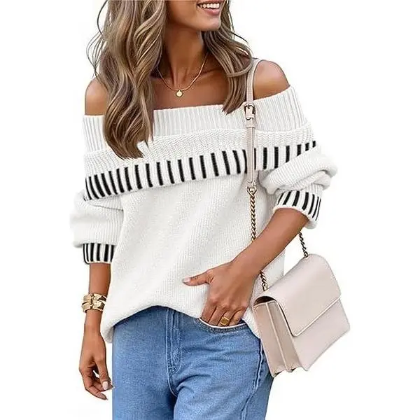 ·Features: The flattering jumper top features long sleeves, off the shoulder, striped ribbed trims and cuffs, soft heathered knit, hip length, relaxed fit, casual style. Warm sweaters for women, cozy sweaters for women, fall winter fashion clothing 2025