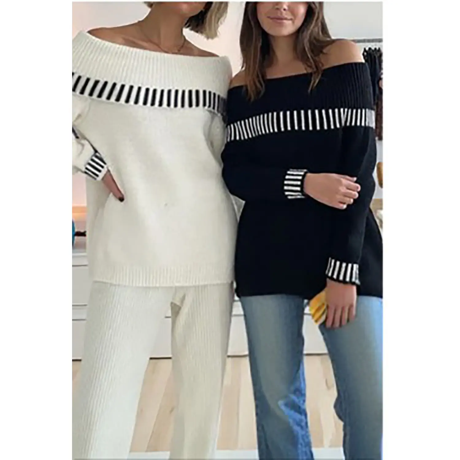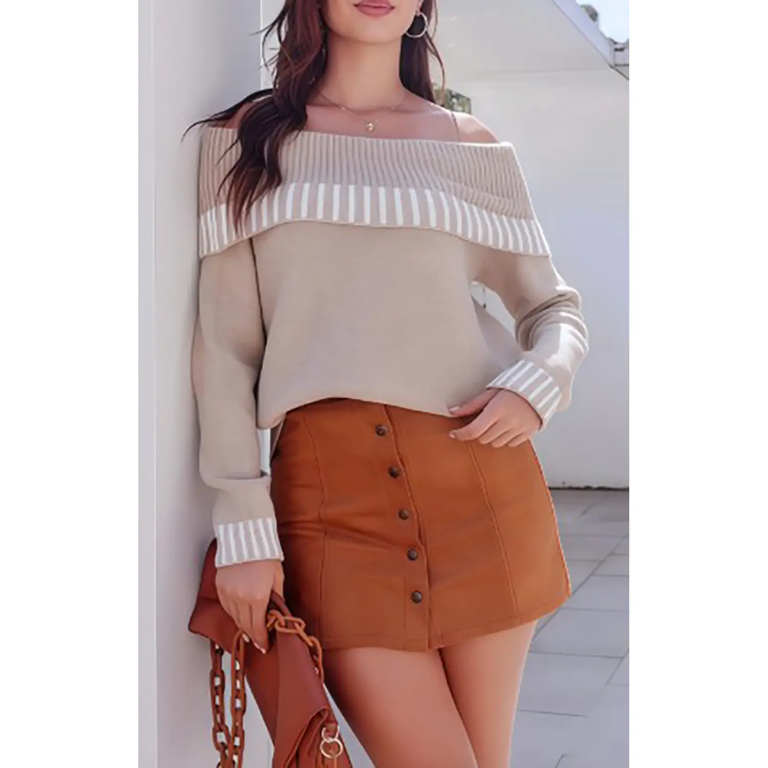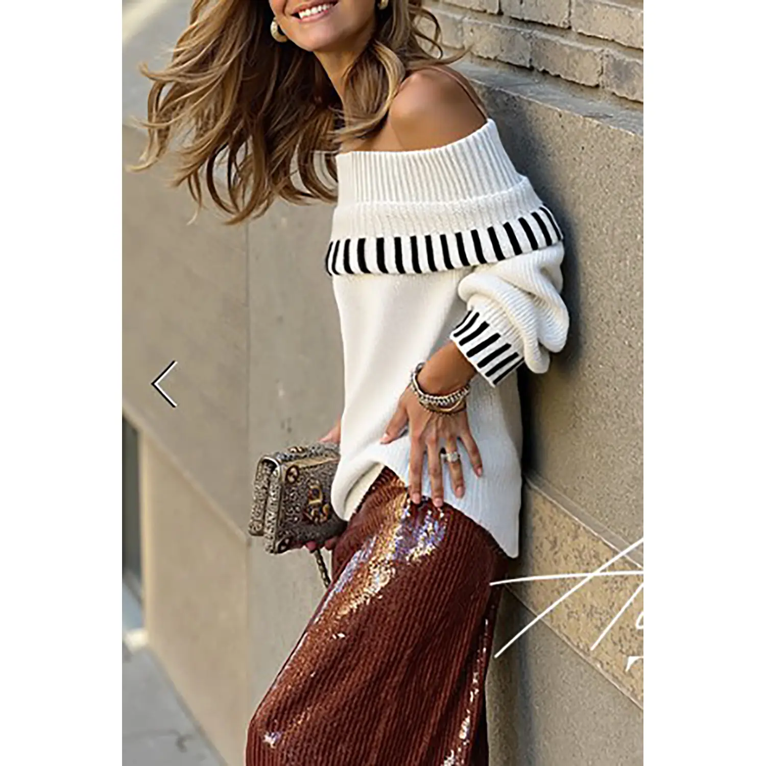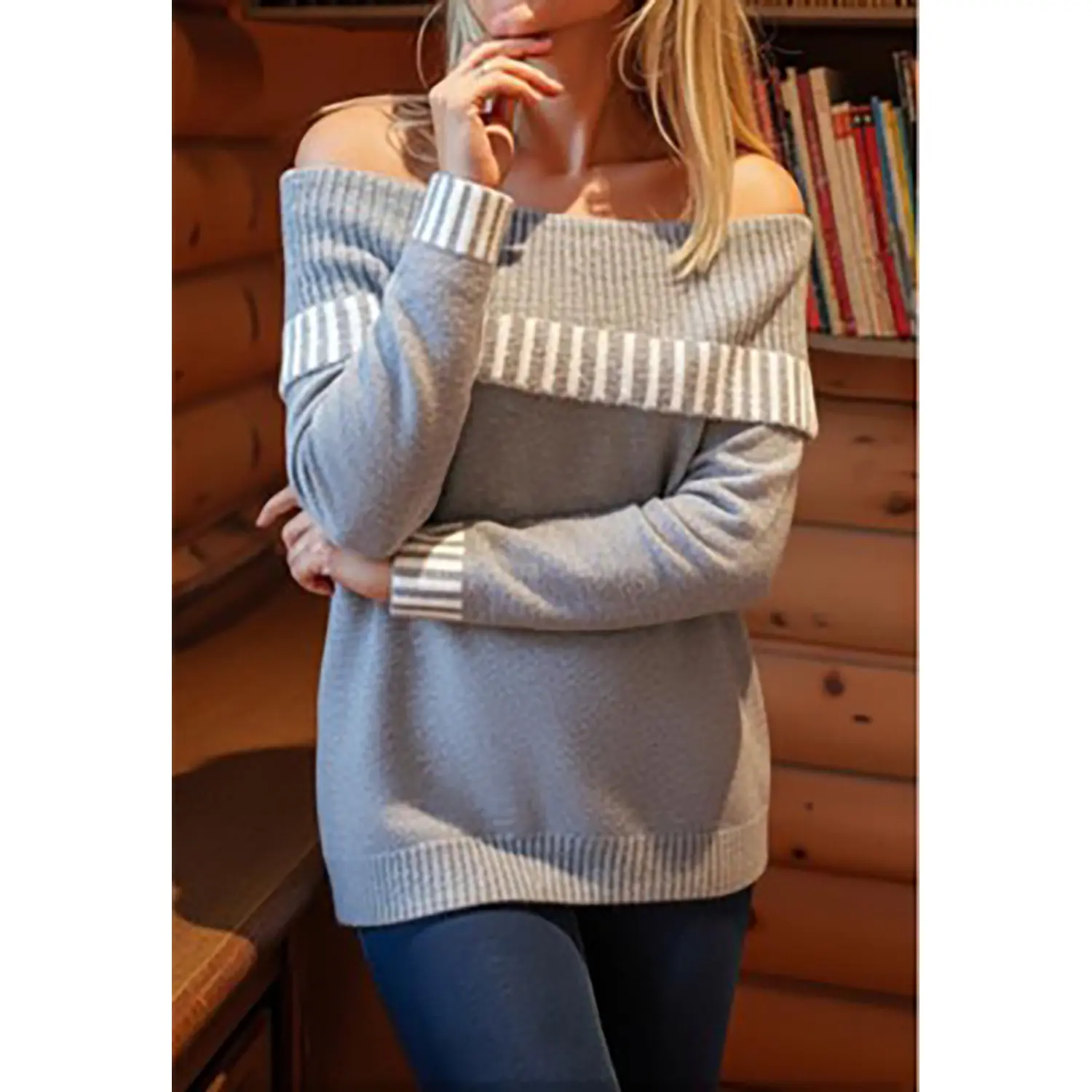·Features: The flattering jumper top features long sleeves, off the shoulder, striped ribbed trims and cuffs, soft heathered knit, hip length, relaxed fit, casual style. Warm sweaters for women, cozy sweaters for women, fall winter fashion clothing 2025