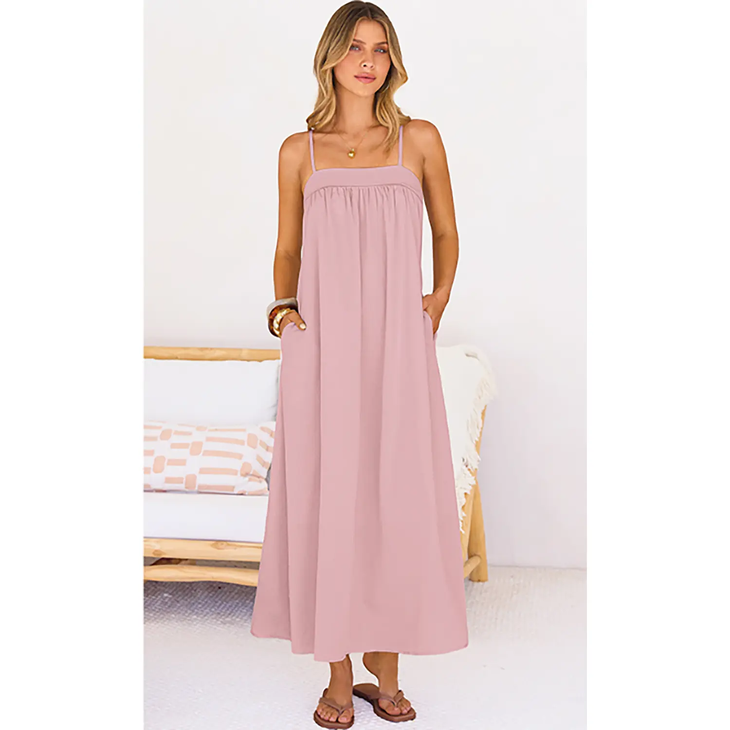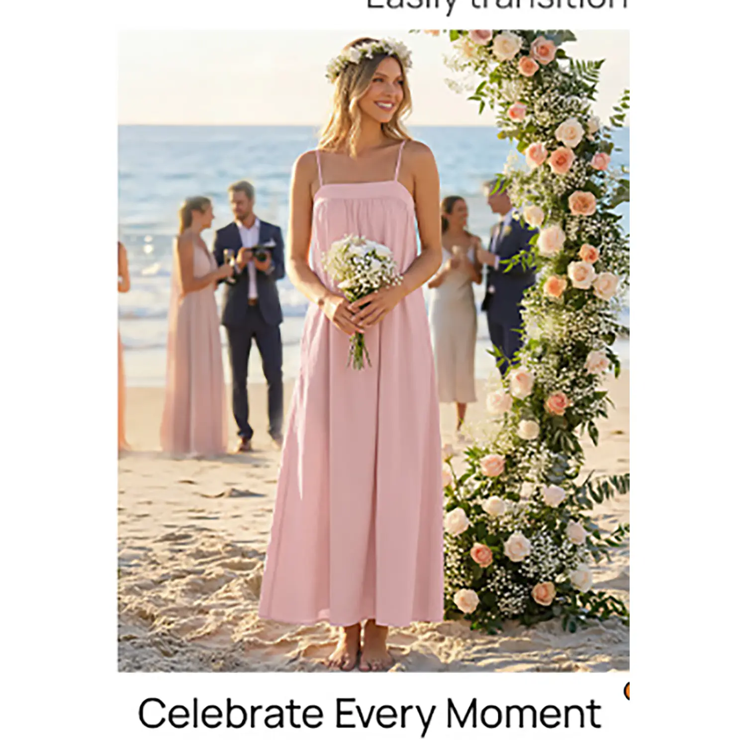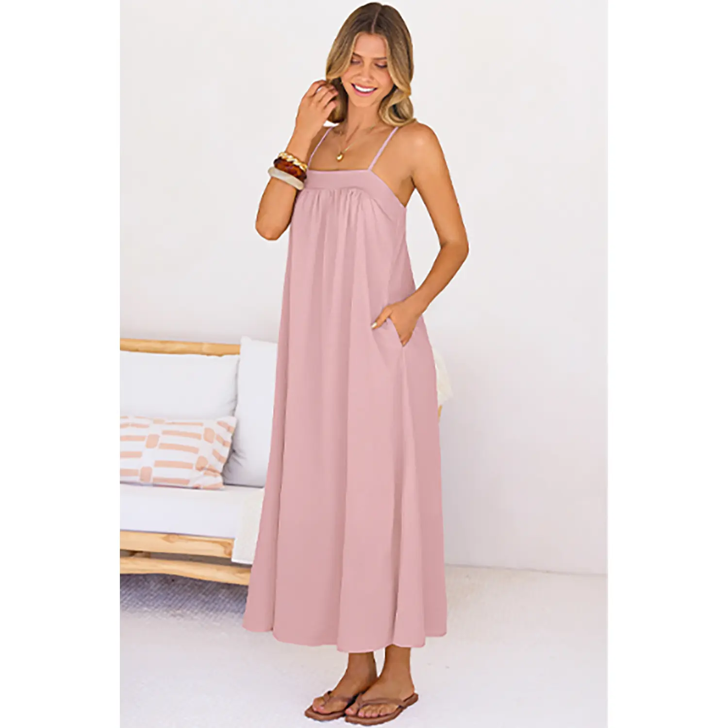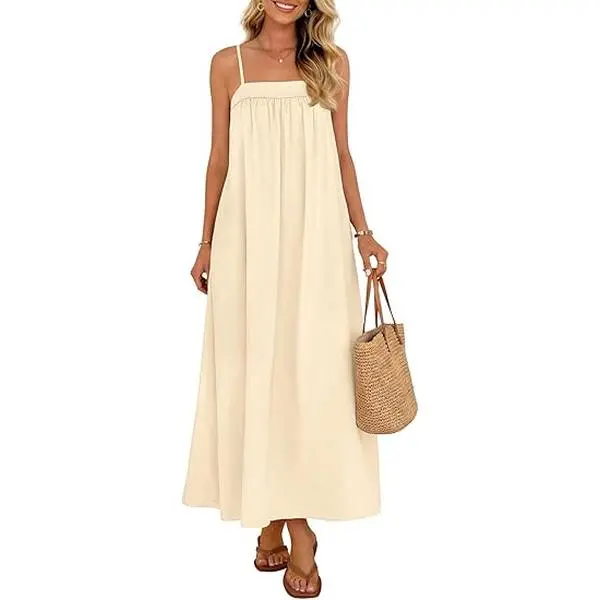 ·Features: Sleeveless, adjustable spaghetti straps, square neck, elastic design at back, along with handy side pockets, casual loose style, relaxed fit silhouette, above ankle length. Trendy elegant maxi dress, sexy summer dress, boho sundress, vacation beach sun dress, holiday party dresses, maternity dress, slip dress, long dresses for women 2025