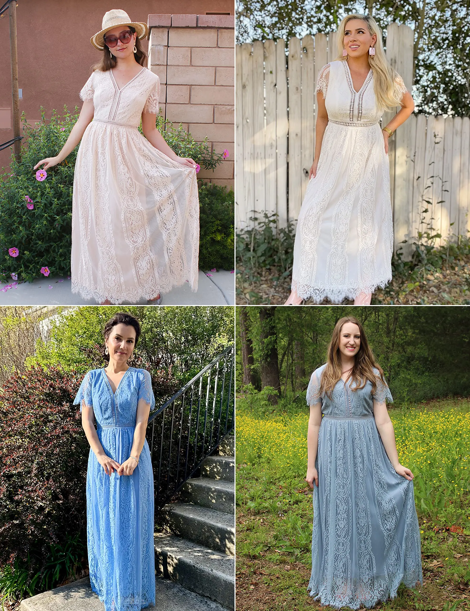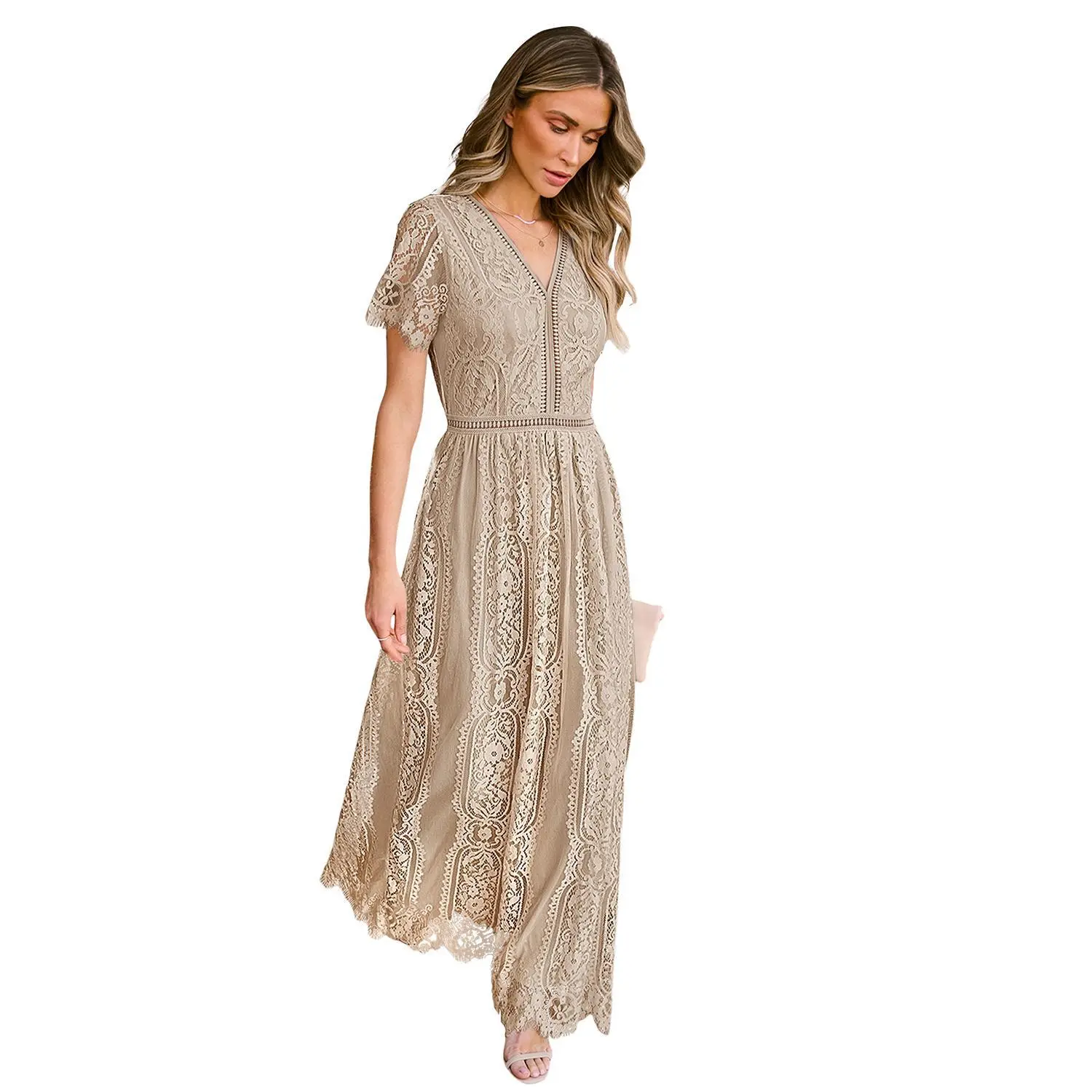 MEROKEETY Women's V Neck Short Sleeve Floral Lace Wedding Dress Bridesmaid Cocktail Party Maxi Dress #florallacedress #chiffondress #bridemaidsdress #2026dresses
