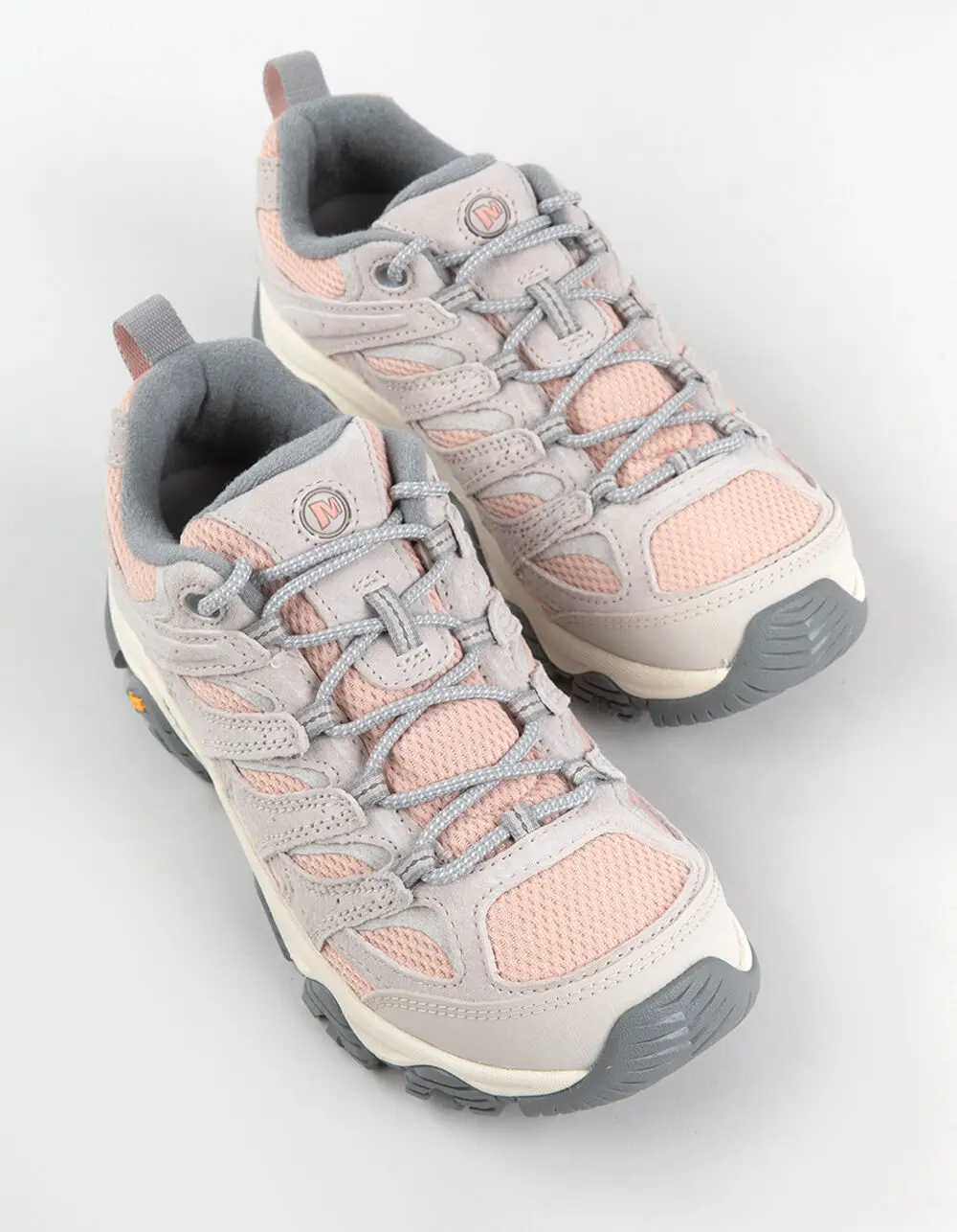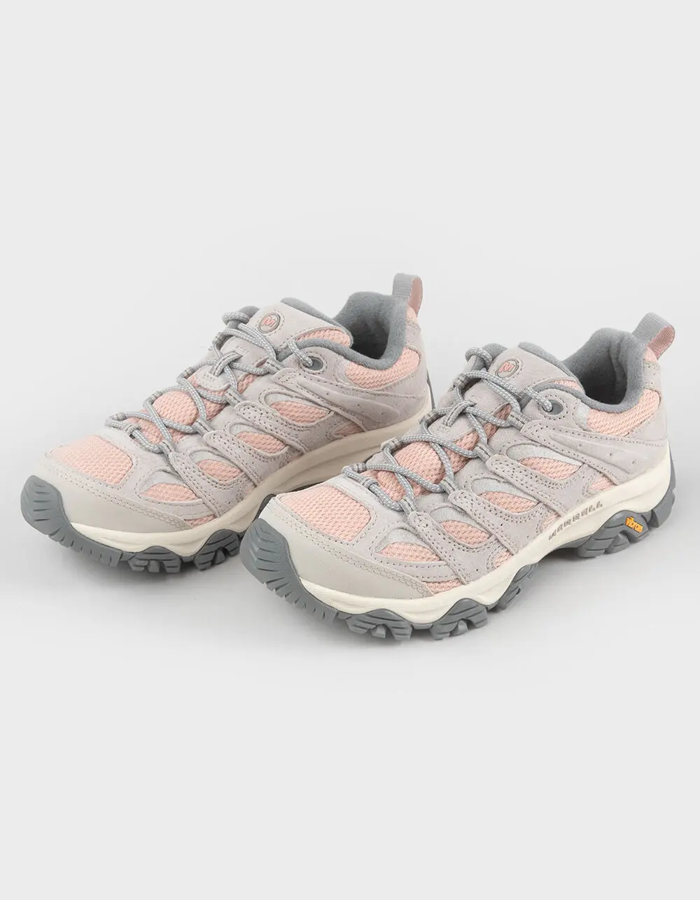 Merrell Moab 3 Shoes. You don't become the #1 hiking boot in the world without knowing a thing or two about the trail. Meet the all-purpose, all-terrain outdoor companion—the Moab 3. Made for trails with lots of obstacles with heavy debris. Frequent speed, direction, and vertical changes. Designed with gold-rated leather for durability and style. Kinetic Fit™ Advanced footbed contours to your foot for a more comfortable stride. Best-in-class Vibram® TC5+ outsole for optimal traction and performance on any terrain, in any condition. Merrell Air Cushion for maximum shock absorption. Added support built into the ankle for stability on uneven terrain. Protective rubber heel and toe cap for worry-free strides. Made with 100% recycled laces, webbing, and mesh lining for Merrell's most eco-friendly Moab yet. Imported.