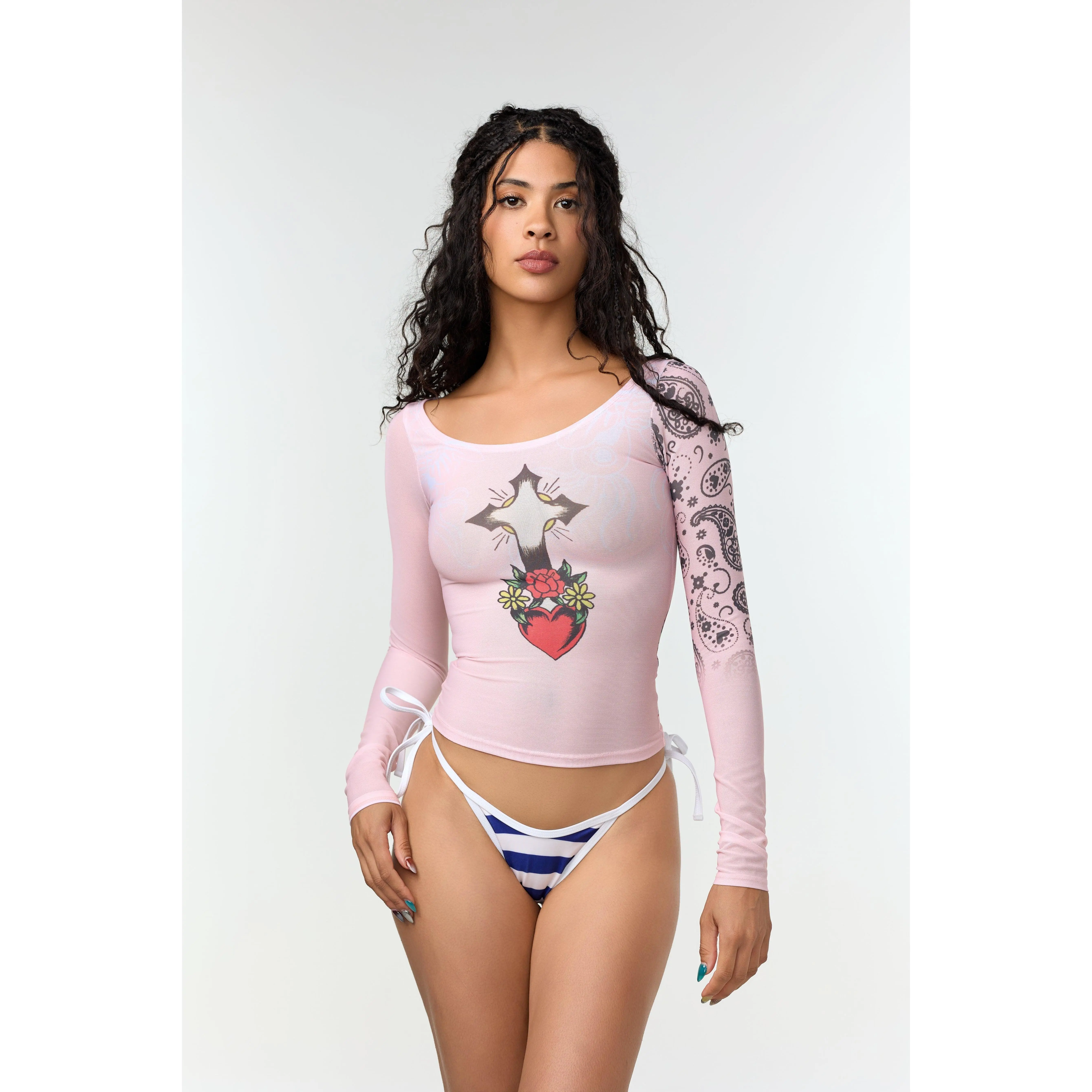 'HEARTS & CROSS'- MESH LONG SLEEVE