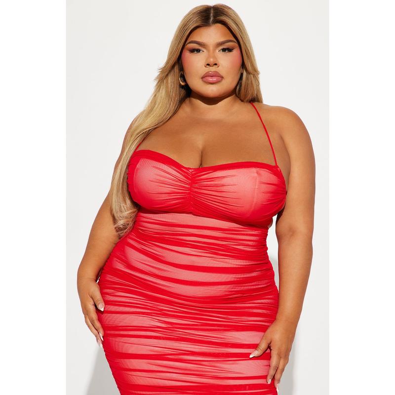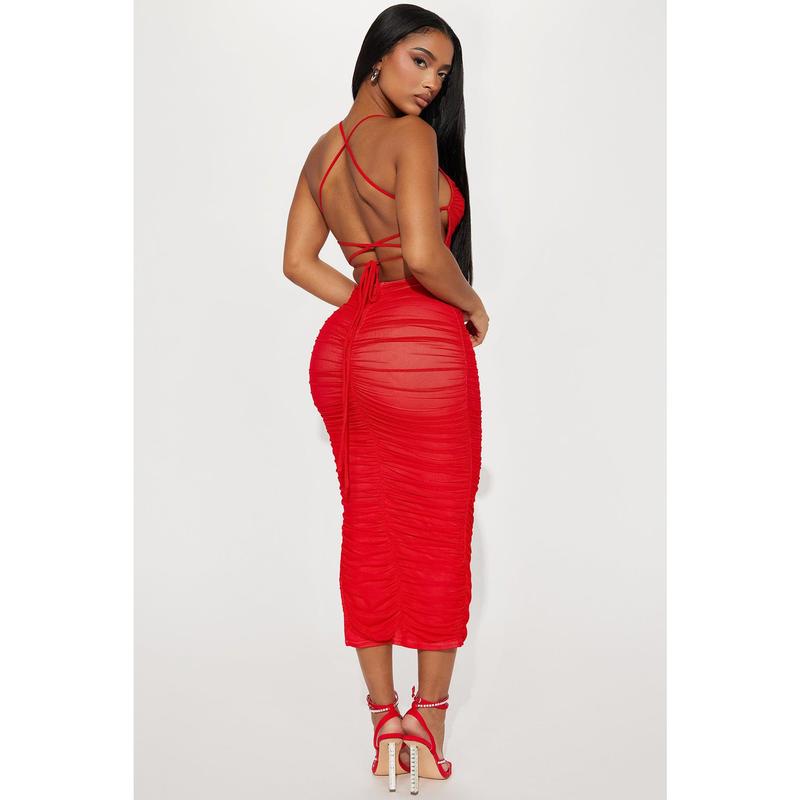 Life After Love Mesh Midi Dress - Red