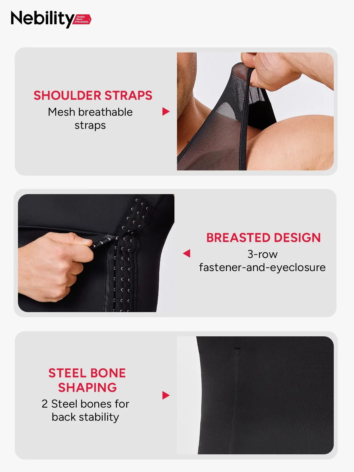 • Main fabric: 60% nylon + 40% spandex, highly elastic and soft, 50% more stretchable, tightly shaped without pinching the flesh.