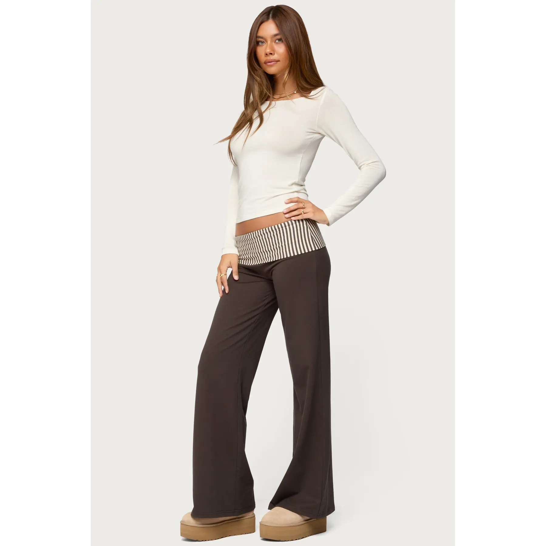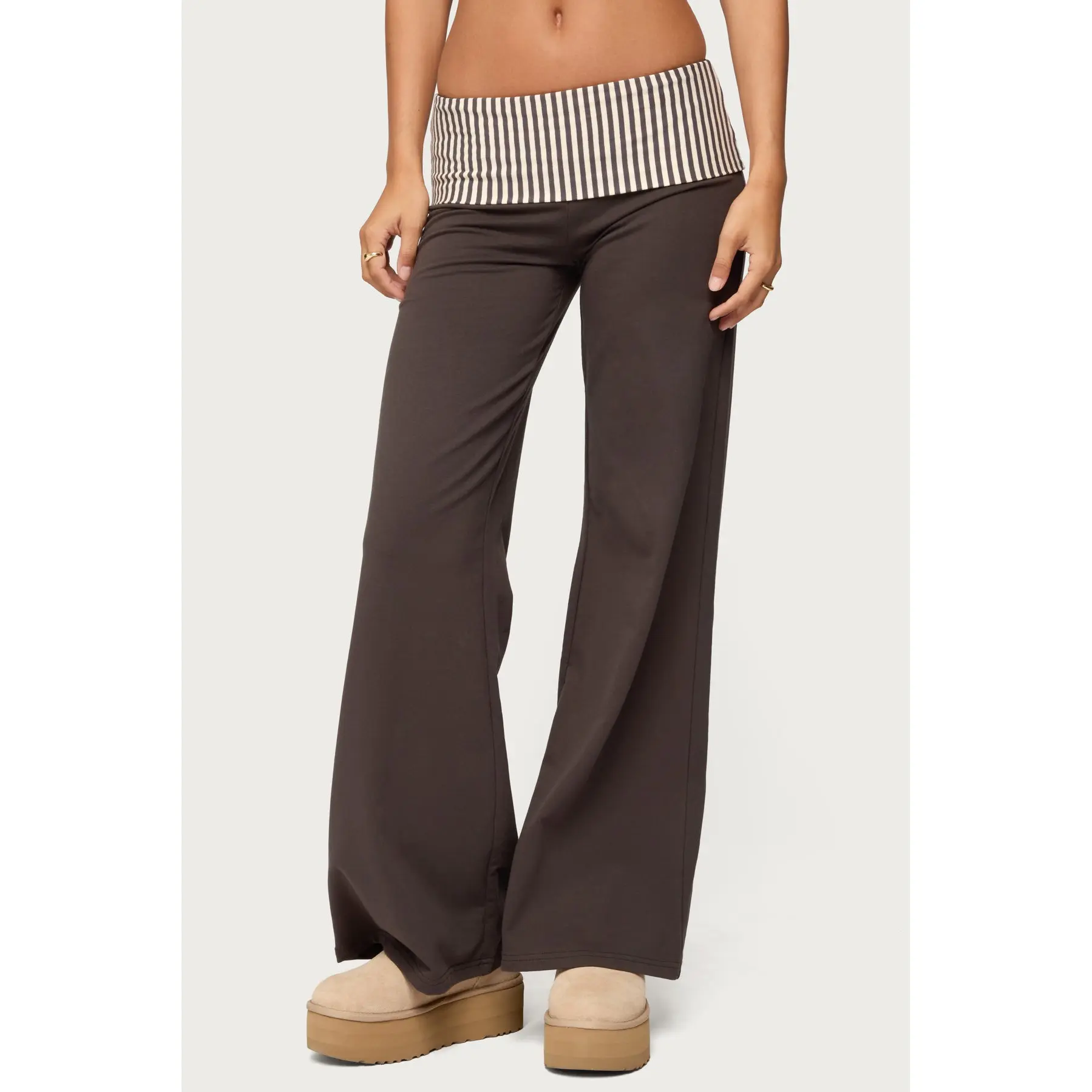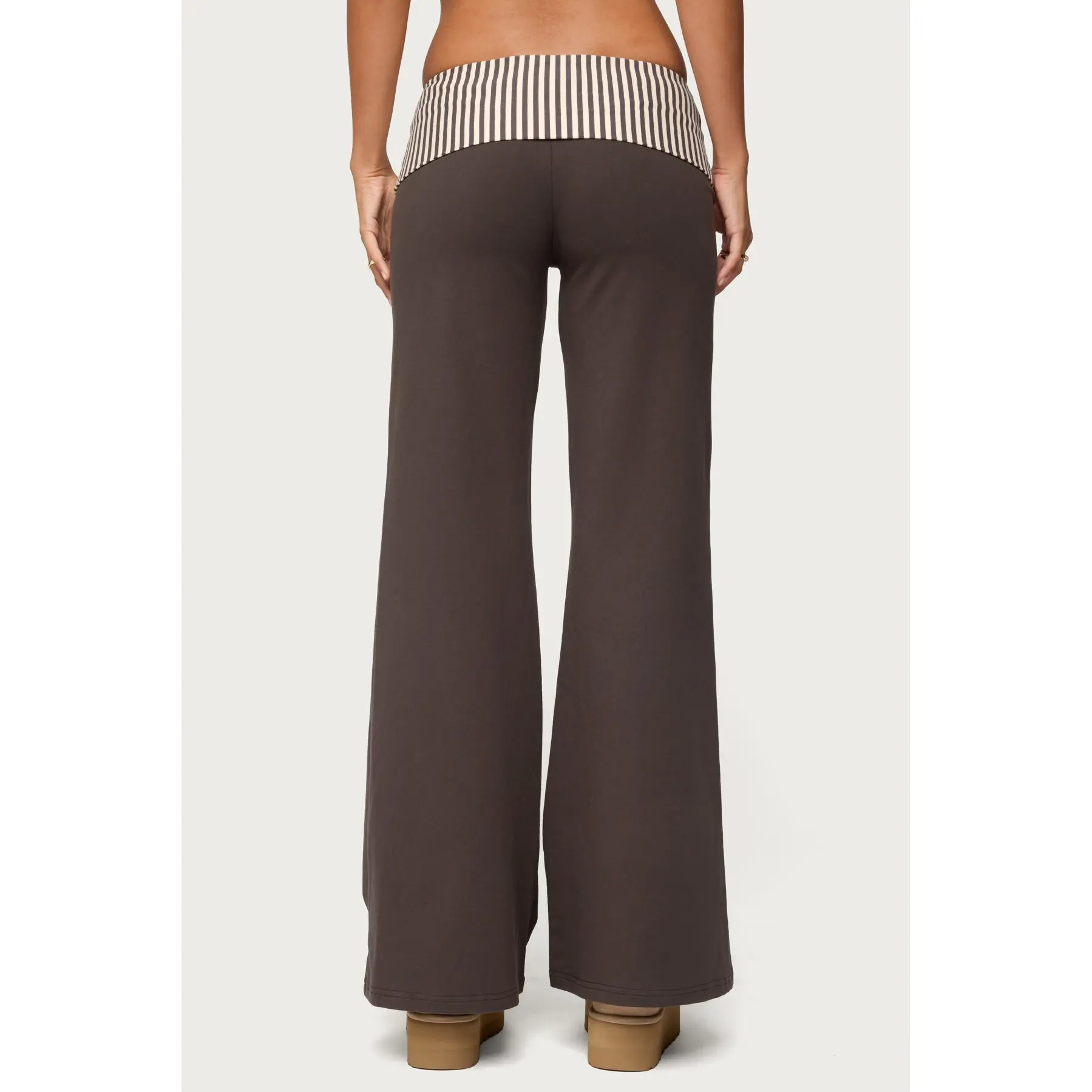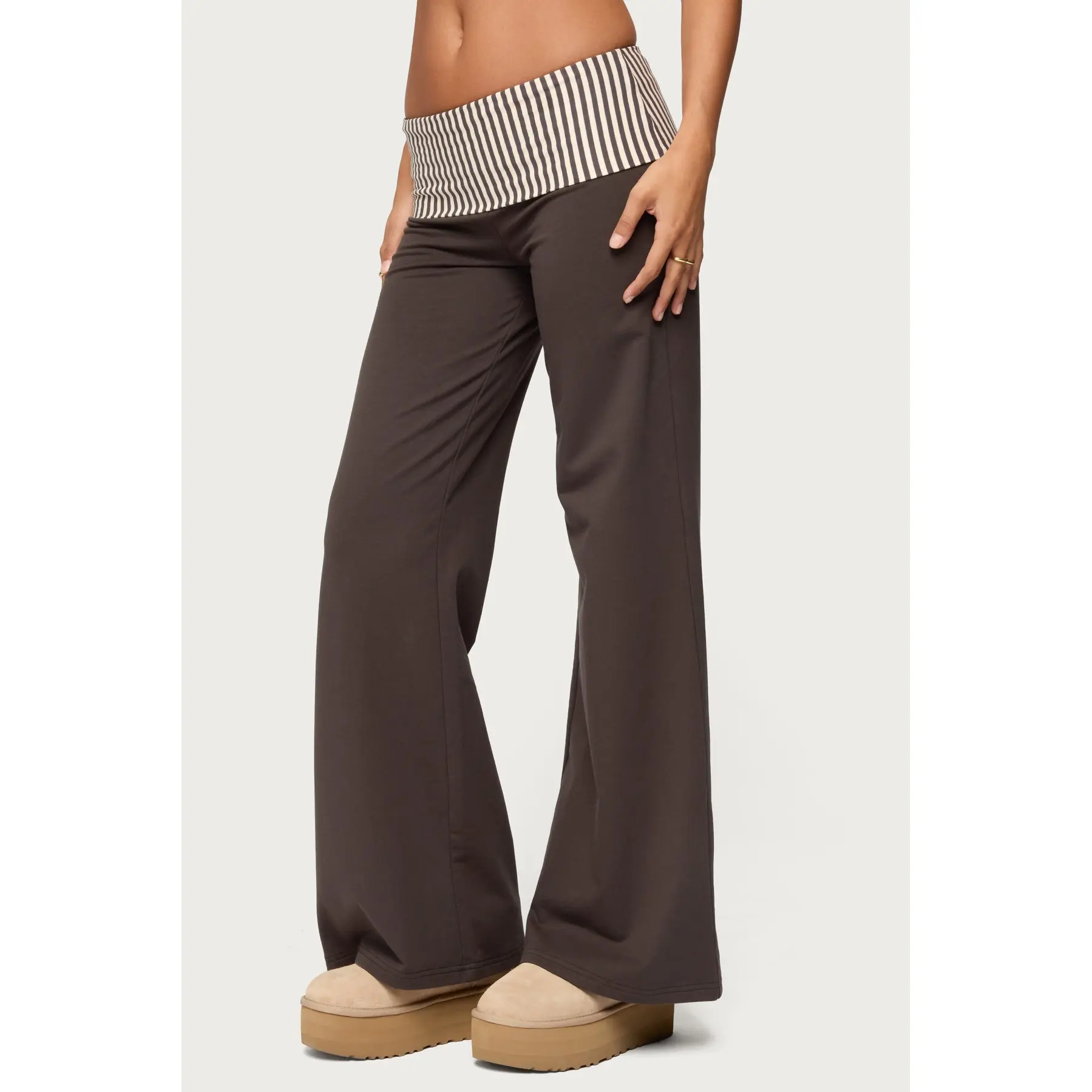 Fabric & Comfort: fabric is more pant like than a traditional cotton foldover lounge like pant but its so comfy and sleek feeling