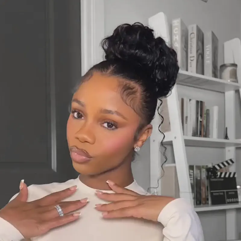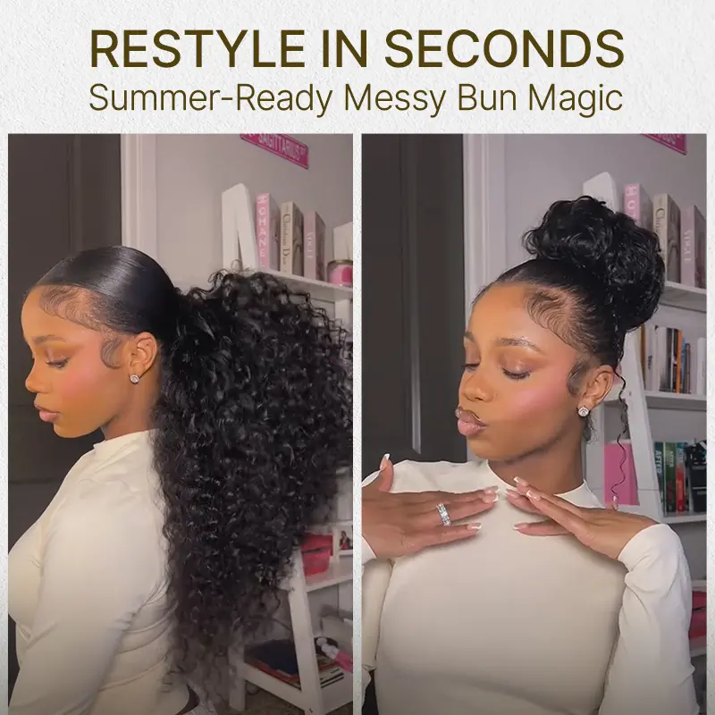 Frodio 100% Human Hair Messy Bun Hairstyle Ponytail Extension Adjustable Drawstring Ponytail TikTokShopBlackFriday