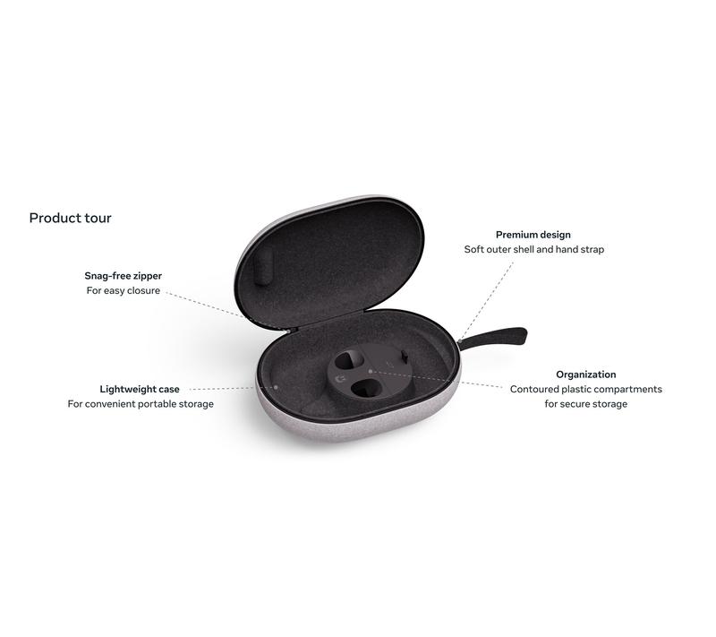 ·Contoured plastic inner compartments designed to fit headset, Touch Plus Controllers, charging cable, adapter, head strap (standard or Elite), and Active Straps, not included