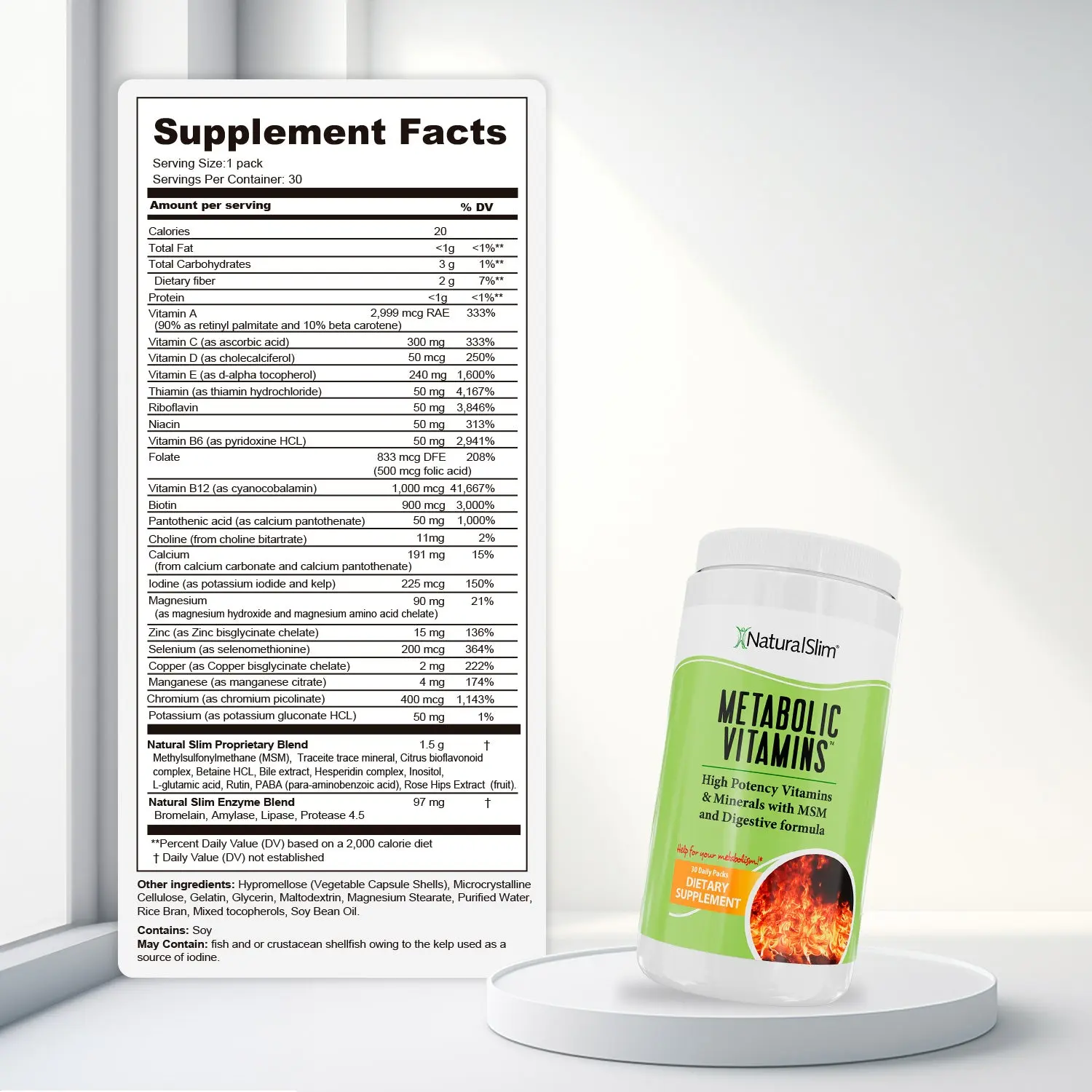 Metabolic Vitamins is a dietary supplement presented in convenient daily packs. Each bottle contains 30 individual packs, designed for organized, month-long use.
