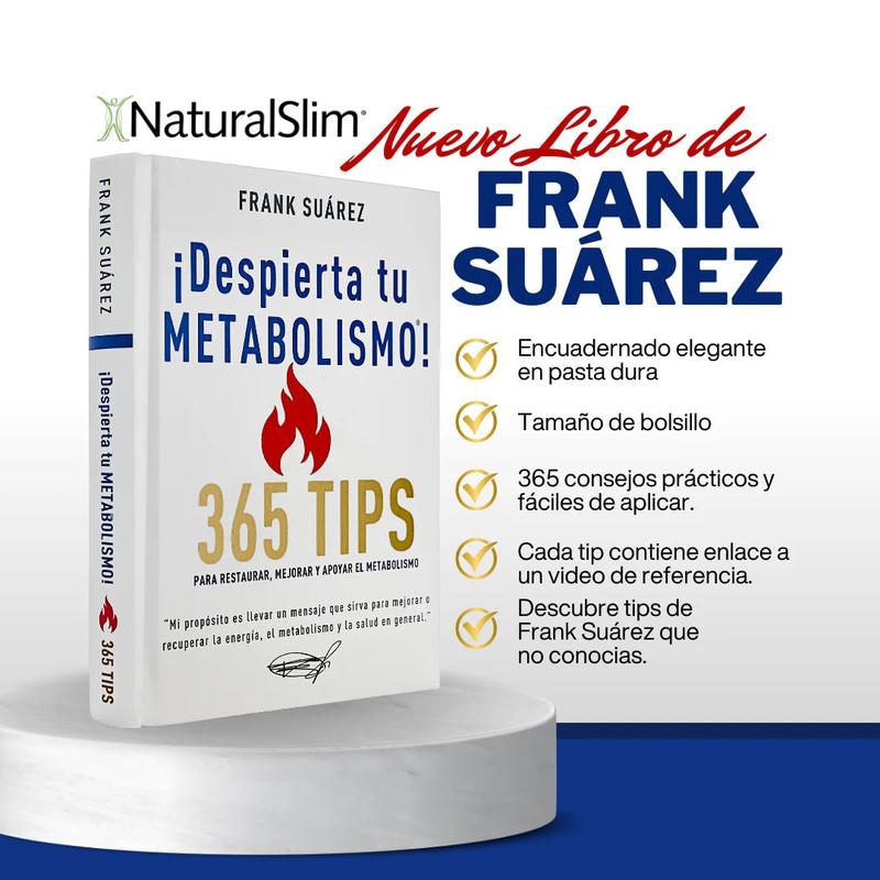 ¡365 Tips para transformar tu metabolismo! 🚀 Accede a los consejos del especialista #FrankSuarez y despierta tu metabolismo ahora. 🔥 📘 Consigue tu copia hoy mismo. #NaturalSlim #MetabolismoDespierto #Bienestar