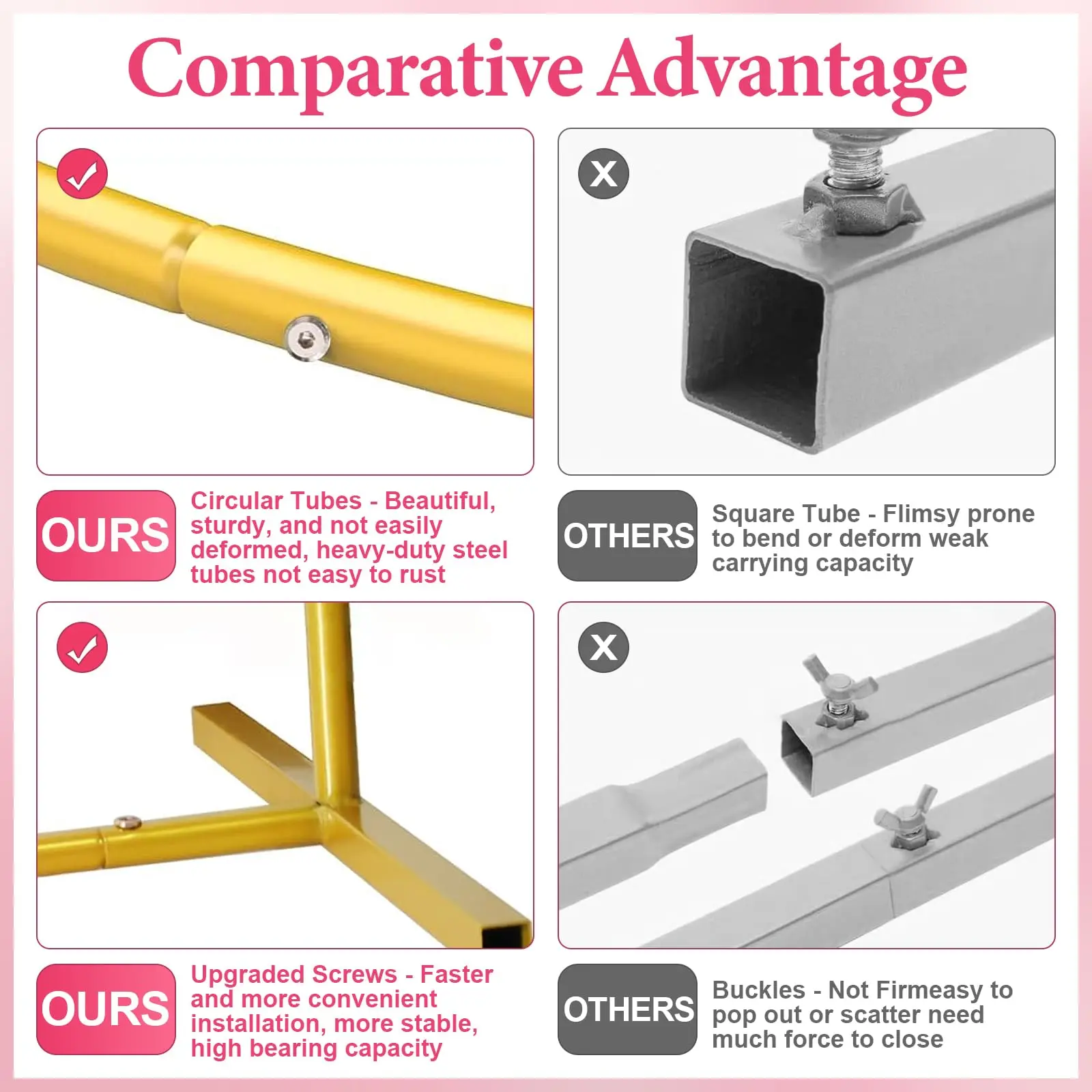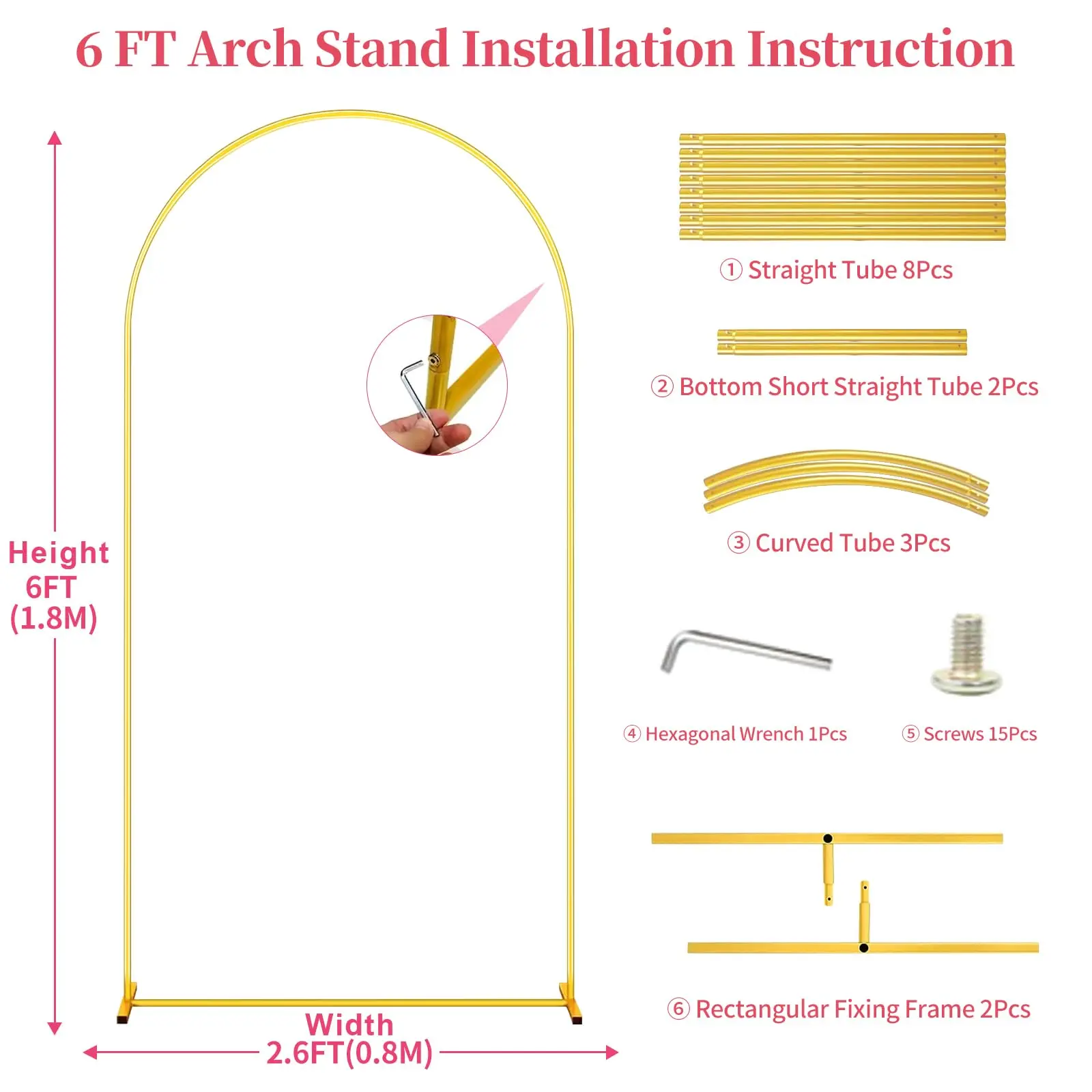 [Easy to Install]The wedding arch backdrop stand prioritizes user convenience, equipped with simple and easy-to-understand installation instructions. This allows you to effortlessly assemble it yourself, saving time and energy.