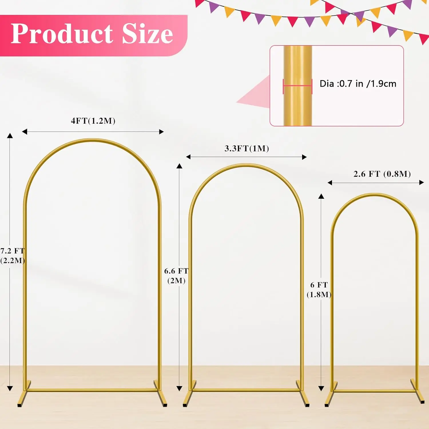 ·High-Quality Arch Backdrop Stand: gold wedding arch backdrop stand is made of metal and will not fade;Elegant round tubing design meets a sturdy square base - this wedding arch backdrop combines curves with rock-solid stability for lasting event perfection