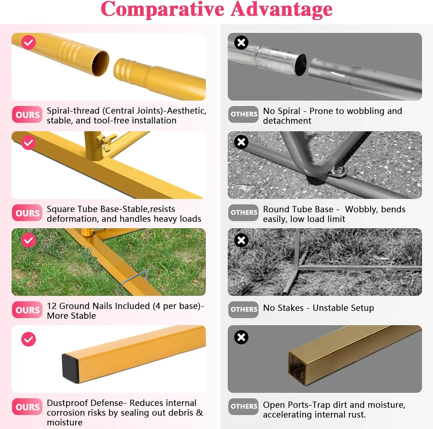 ·Sturdy & Aesthetic Connections:wedding arch stand features spiral-threaded joints instead of traditional screws at central structural connection points. It not only creates an aesthetic but also ensures rock-solid stability