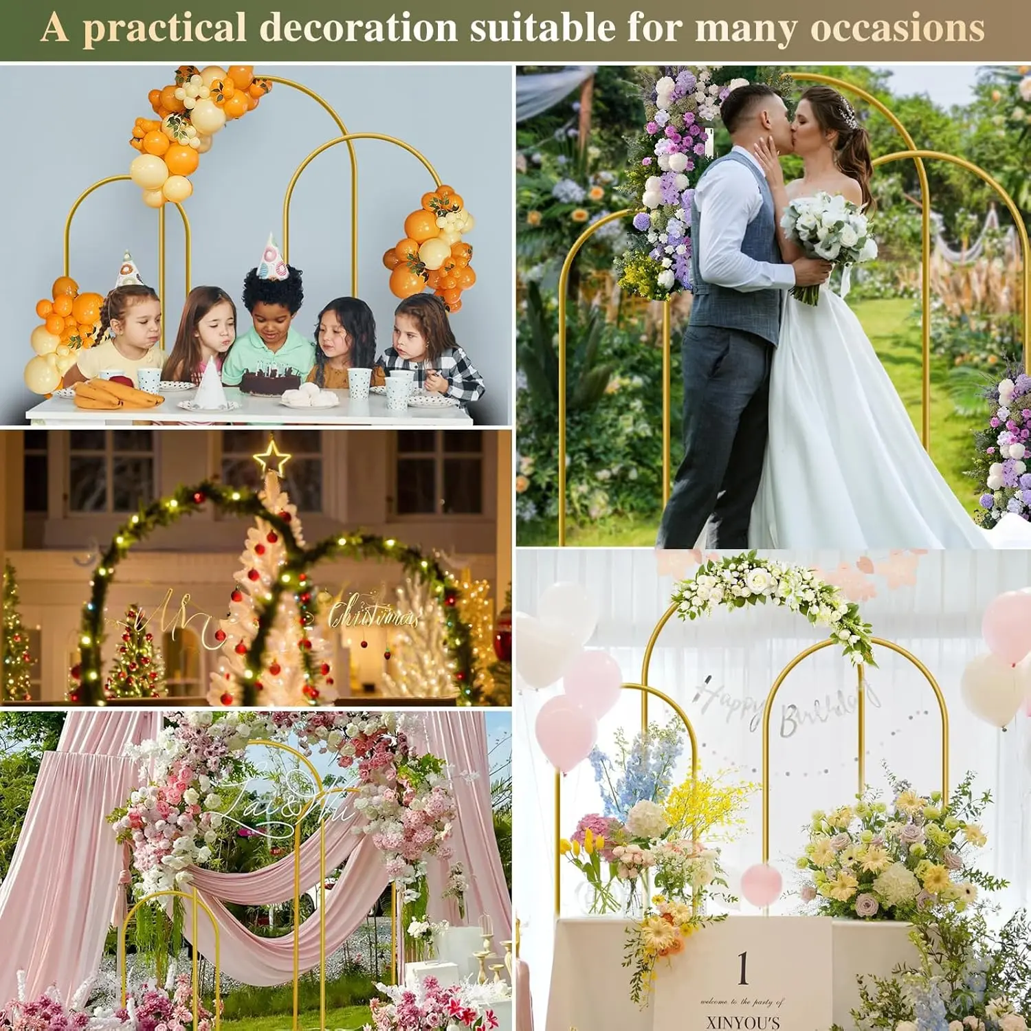 ·Versatile & Reusable: Balloon arch frame is perfect for wedding, baby shower, birthday party, graduation, anniversary, garden, photography, photo booths, commercial events, New year, Halloween, Thanks Giving Day, Christmas indoor or outdoor decorations