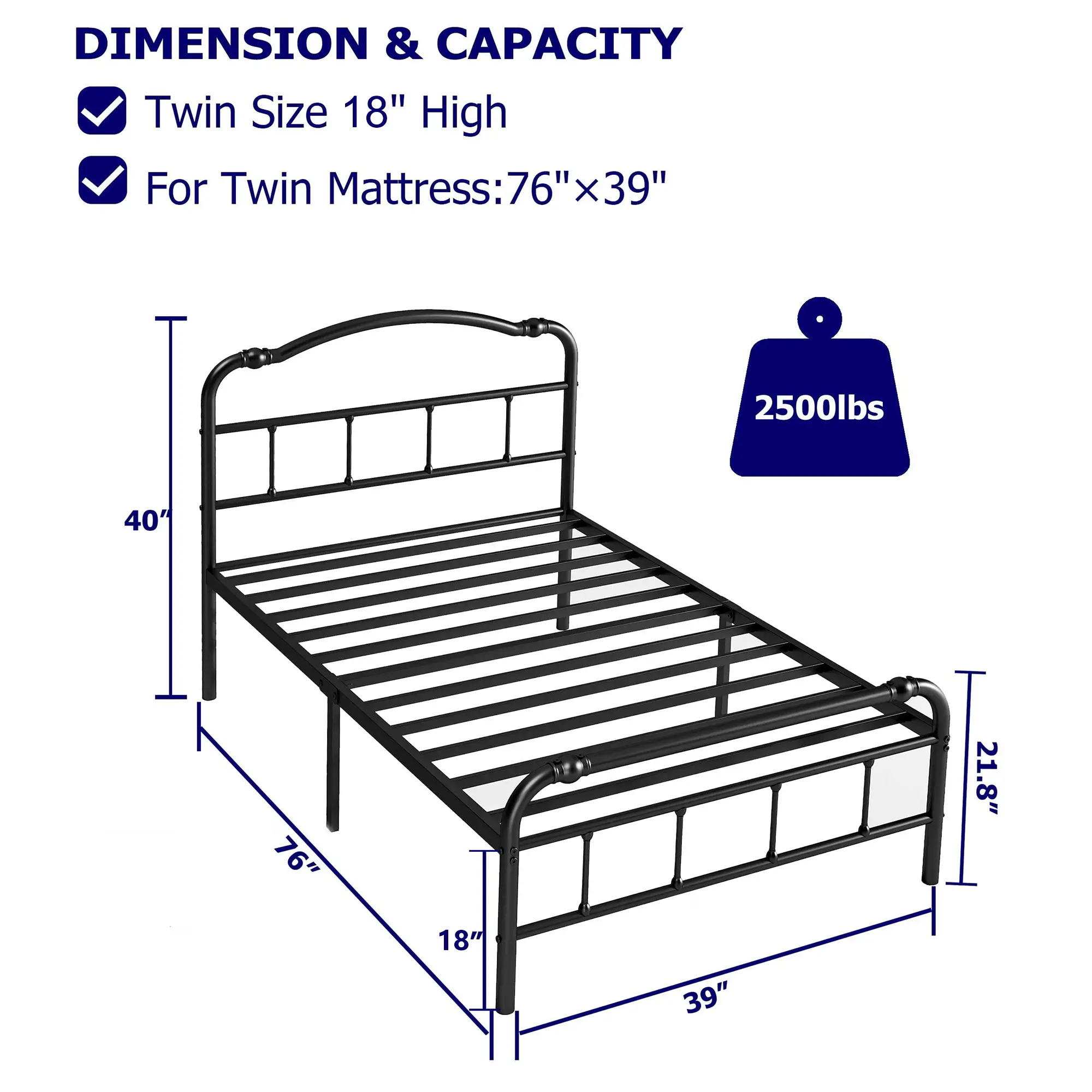 Sturdy & Durable 🛠️- Constructed with heavy-duty quality materials- Queen-size metal beds with strong load-bearing capacity- 10 metal slats and 9/6 metal legs- High load capacity up to 2500/3500 lbs- Meets the needs of most families