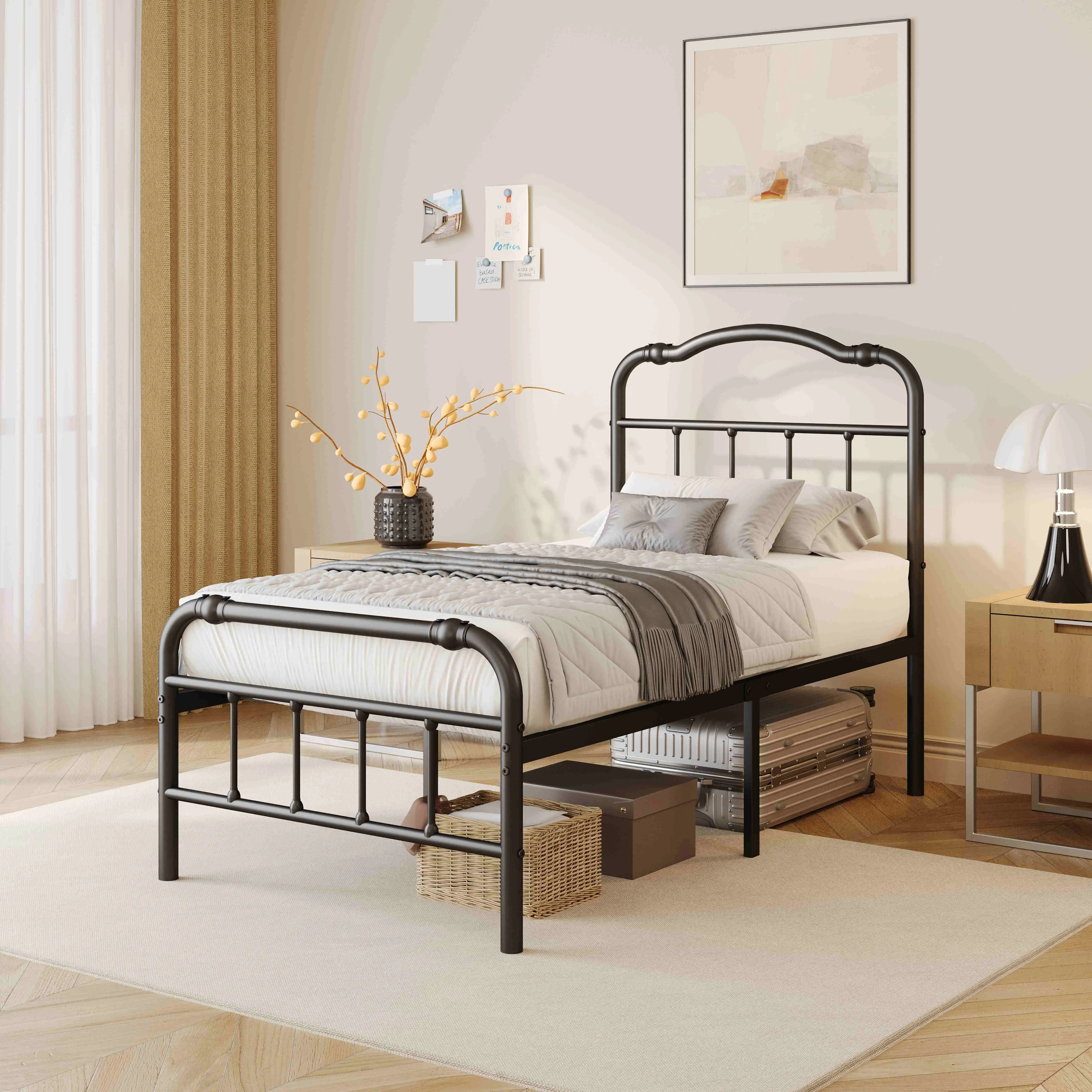 Aardhen Heavy Duty Metal Platform Bed Frame: Victorian Style, No Box Spring Needed, Easy Assembly, No Squeak, Sturdy, Durable, Noise-Free, Vintage Aesthetic