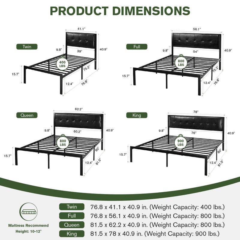 MUTICOR Twin/Full/Queen/King Size Bed Frame with Upholstered Headboard, 【Frame Only No Mattress】Platform Bed Frame with Metal Slats, Button Tufted Square Stitched Headboard, Noise Free, No Box Spring Needed#TikTokShopBacktoSchool