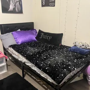 Overall, this bed is very good quality. It is very easy to assemble. It has a LED lights is like very pretty and also it has storage to like put stuff in it and overall is very easy to put together. It also has an outlet. Assembly: Very easy to assemble. Material: Soft. Characteristics: Has storage. Design: Has led lights.