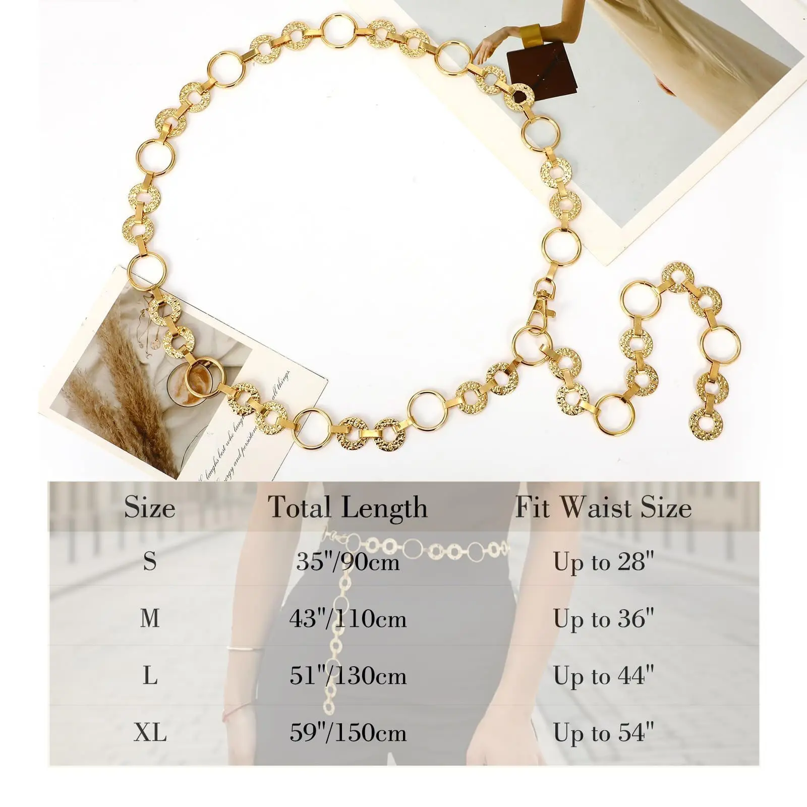 The XZQTIVE Metal Waist Chain Belt adds a modern touch to any outfit. Made of polished alloy, it features a rectangular/square/oval/round metal design. The smooth surface ensures a glamorous look without added weight. Perfect for dresses or pants, this belt elevates your style effortlessly.