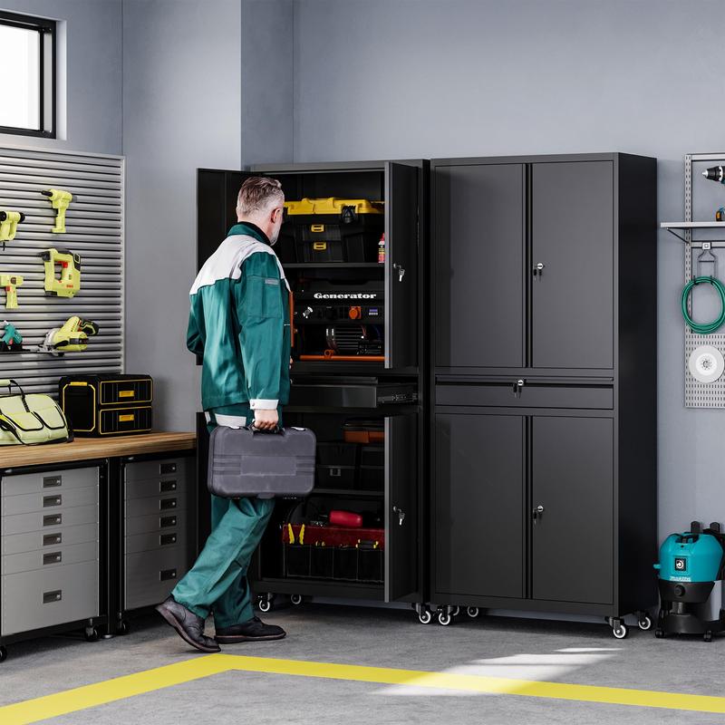 ·【Versatile Usage】Equipped with 4 detachable 360° rollers (2 lockable) to help you move the cabinet at will, suitable for homes, offices, garages, schools, shops, warehouses or other commercial spaces.