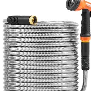 Very happy with my purchase! Light weight metal garden hose and no tangles. Thank you!