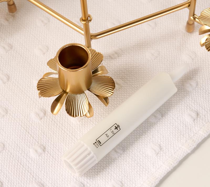 ·Includes metal lantern with flameless taper candles and remote control