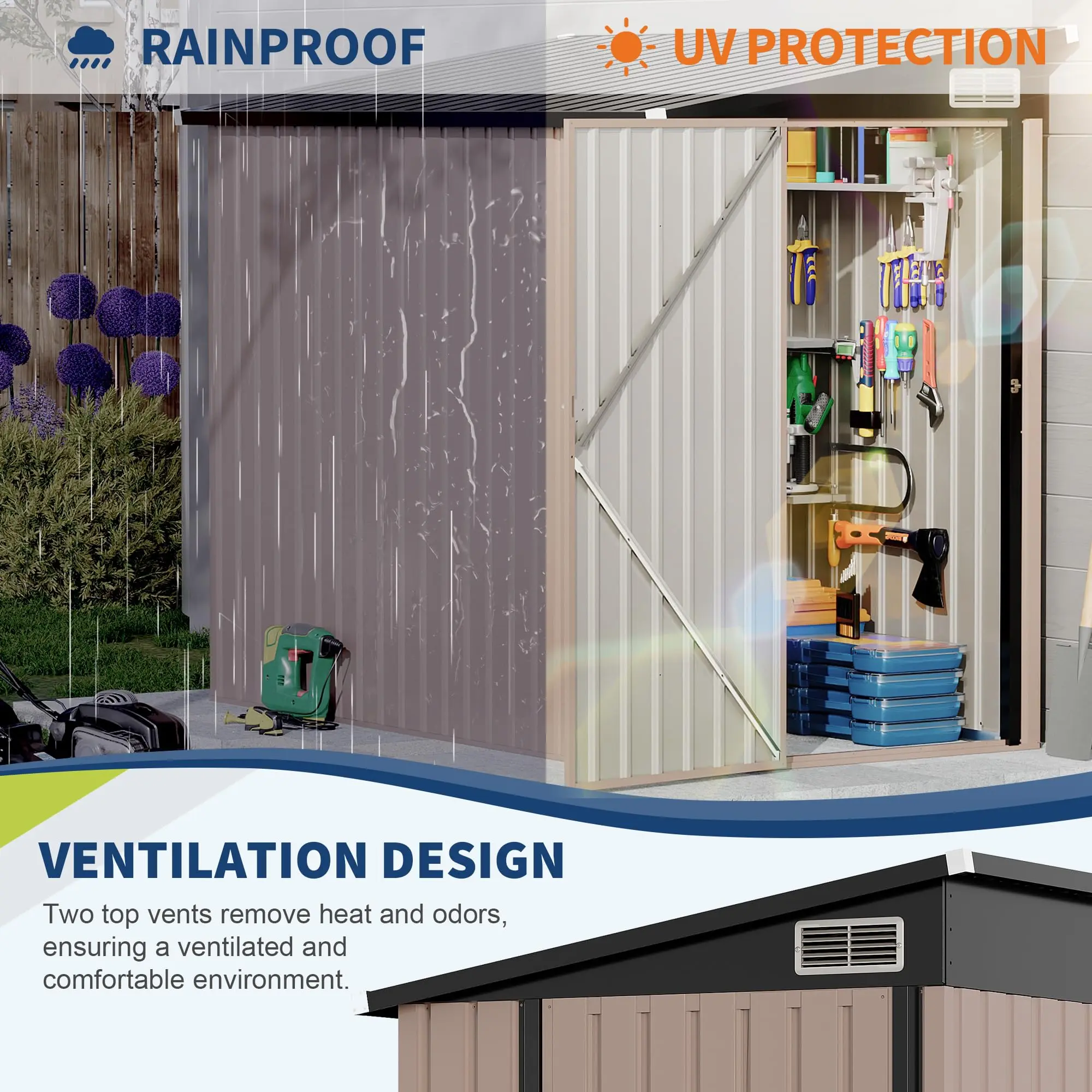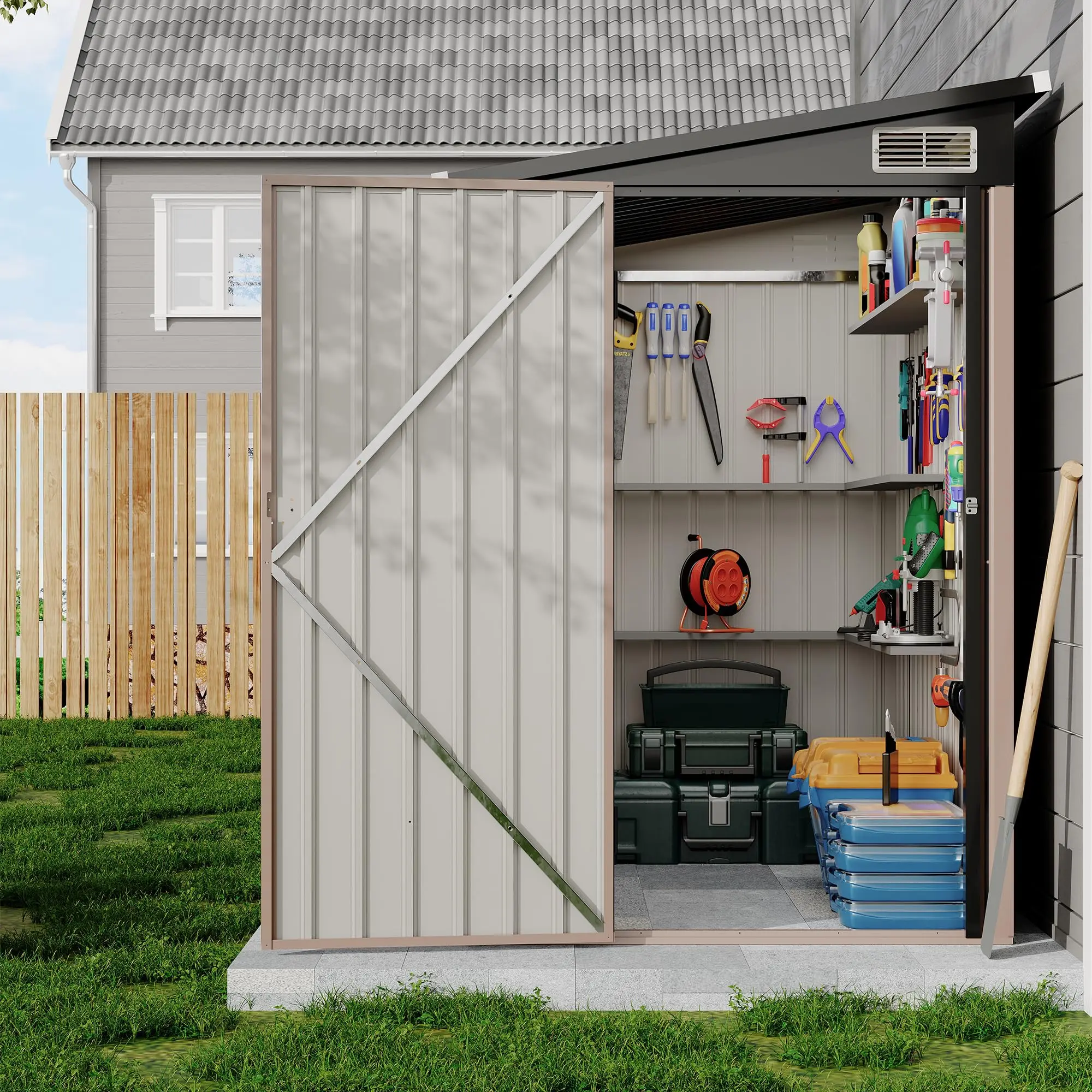 5. 【GARVEE】4x8ft Metal Outdoor Lean-To Storage Shed featuring a heavy-duty garden utility design with metal wall side, built for durability and weather resistance, ideal for outdoor storage needs
