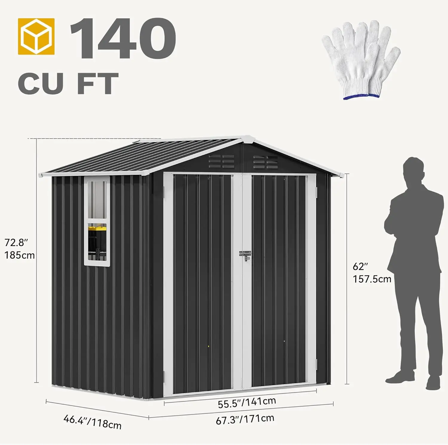 Ample Storage Capacity: Our 6'x4' outdoor storage shed measures 67.3''L x 46.4''W x 72.8''H, and provides a capacity of 140 Cuft; It offers a secure and weather-resistant shelter for garden tools, lawn equipment, bicycles, and outdoor supplies; Can also serve as a pet haven or a plant greenhouse