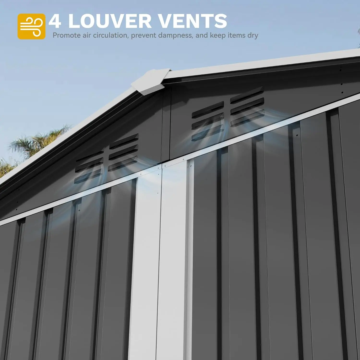 Secure & Lockable: The garden shed is equipped with a lockable door to enhance security; Choose a suitable lock and effectively prevent theft or unauthorized access to your tools and belongings; The double sliding doors offer convenient entry and exit