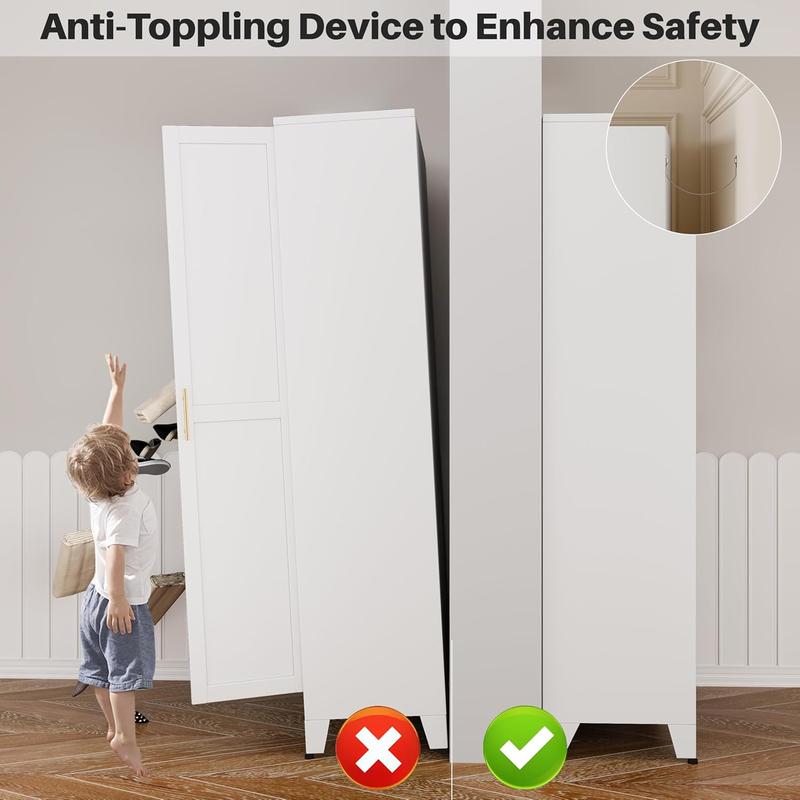 Secure & Stable Design:Measuring 14.3"D x 28.7"W x 70.8"H, the cabinet includes 4 adjustable legs for enhanced stability and weight distribution.Integrated anti-tipping devices and compatibility with a wall anchor kit (included or available) ensure it can be securely fixed to the wall, preventing tipping and safeguarding your family.