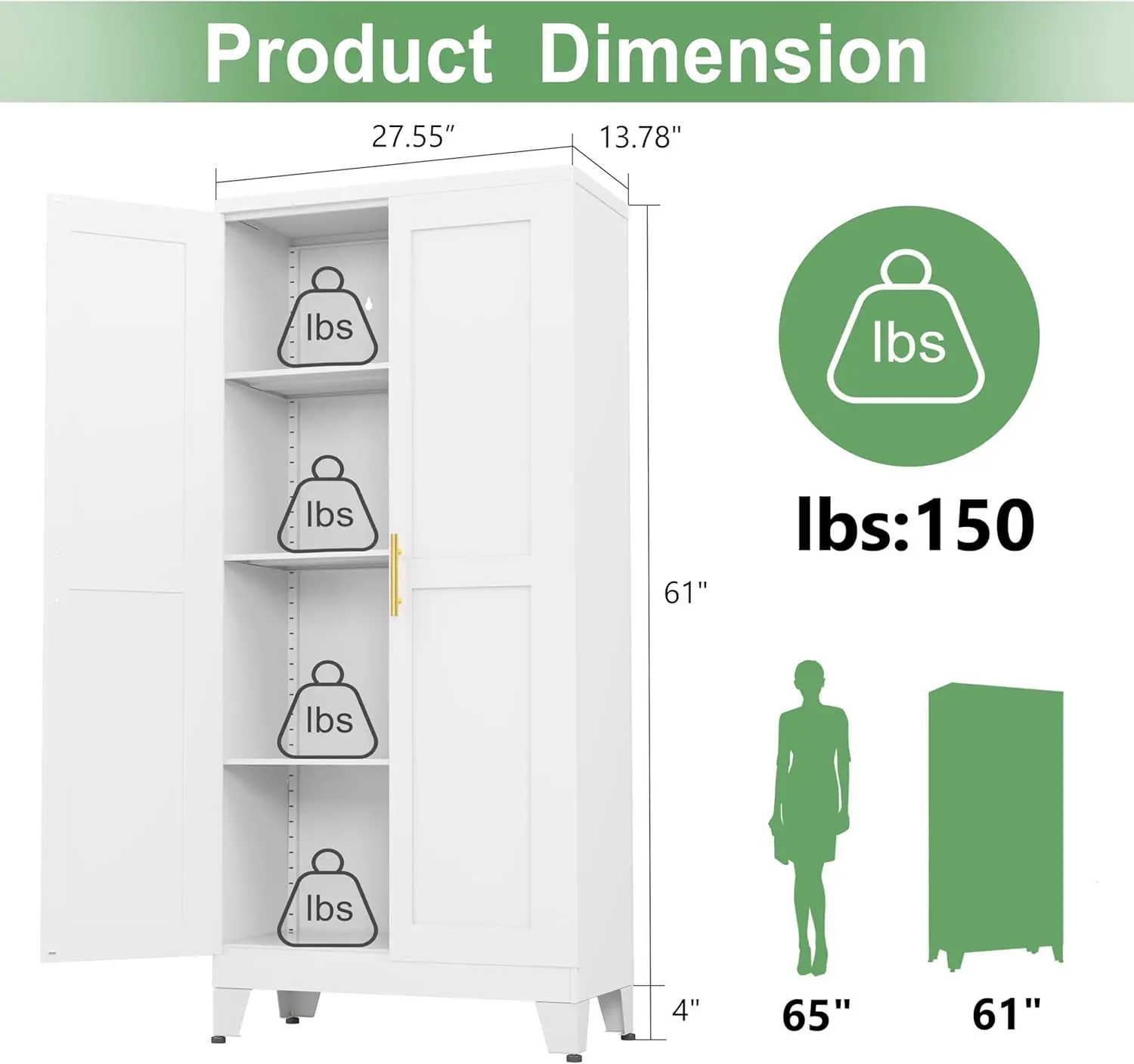 ·Dimensions: 13.78"D x 27.55"W x 61.02"H