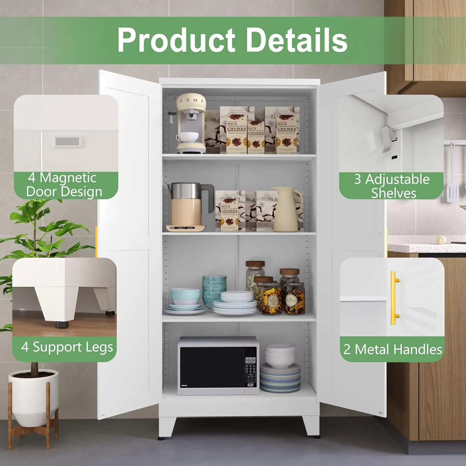 Metal Pantry Cabinet 61" with 2 Doors and Adjustable Shelves