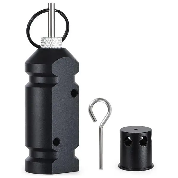 The security equipment comes with a low-level trigger wire that connects to the device.When pulling the activation pin it will set off a loud alarmThe spring-loaded trigger mechanism can be reloaded and used repeatedly, ensuring reliable safety.Made from 6061 aluminum and built to last.