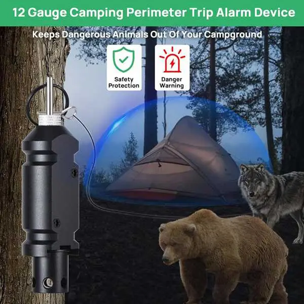 Animal Deterrent: Acts as a deterrent against dangerous animals, providing added safety Durable Construction: Constructed from strong 6061 aluminum, ensuring longevity Easy Installation: Features a low-level trigger wire and a spring-loaded mechanism for simple setup Efficient Alert System: Includes a loud alarm that sounds when activated, enhancing safety Multiple Use Options: Compatible with a range of ammunition types, making it versatile for various outdoor scenarios Outdoor Security Enhancement: Ideal for campgrounds, farms, and gates to increase perimeter security #security #outdoor #campground #camp #alarm