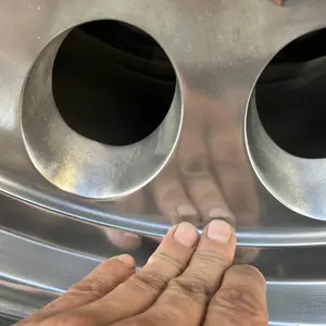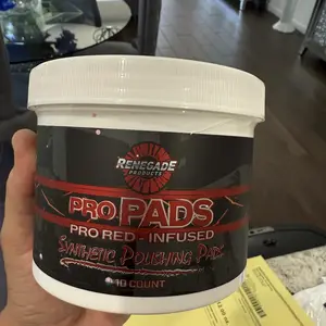 Apply Renegade Pro Red Liquid Metal Polish to a Premium Microfiber Round Pad, work it into the surface thoroughly, and let dry for about 3 minutes.