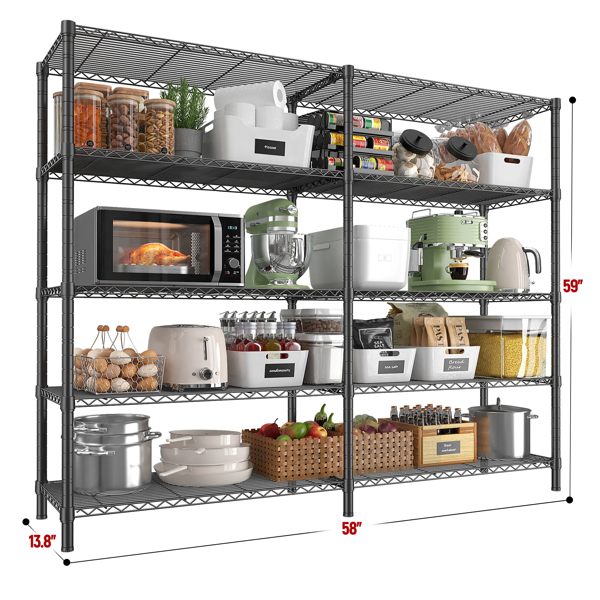 ·【58"W X59"H X 13.8"D Monster Size Metal Shelving】You will be amazed by the remarkable size:58"W X59"H X 13.8"D.The capacity of the 58’’W storage shelves is twice that of the market shelves, easily meeting your storage needs.