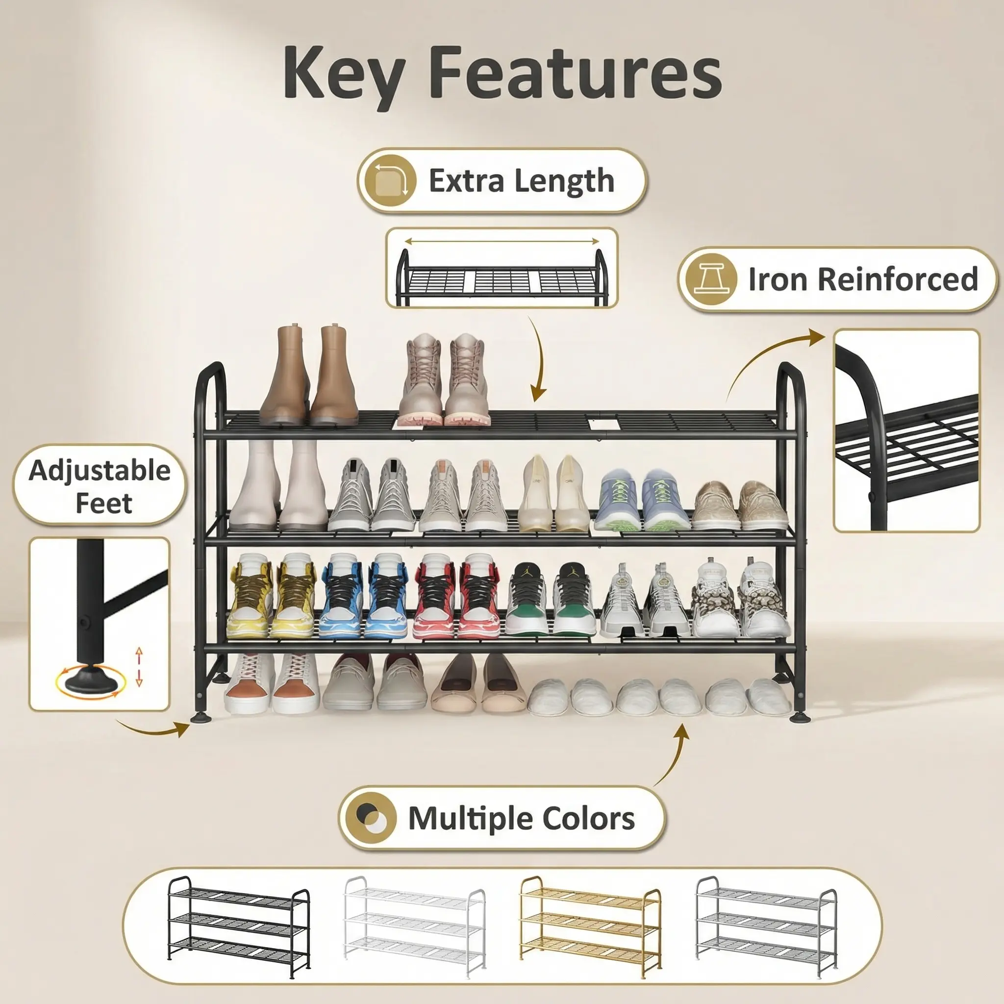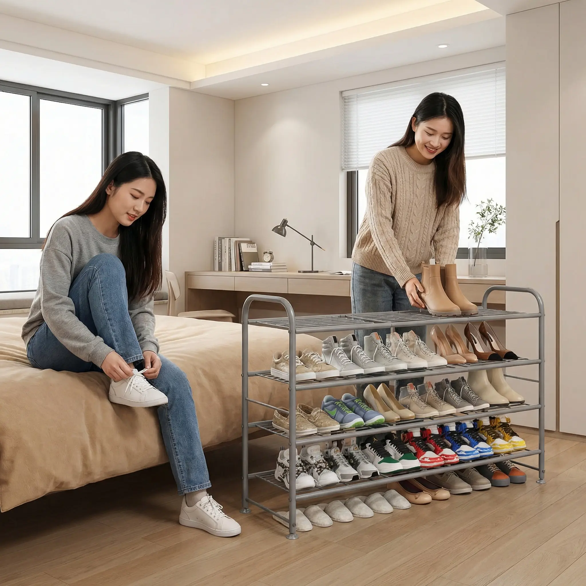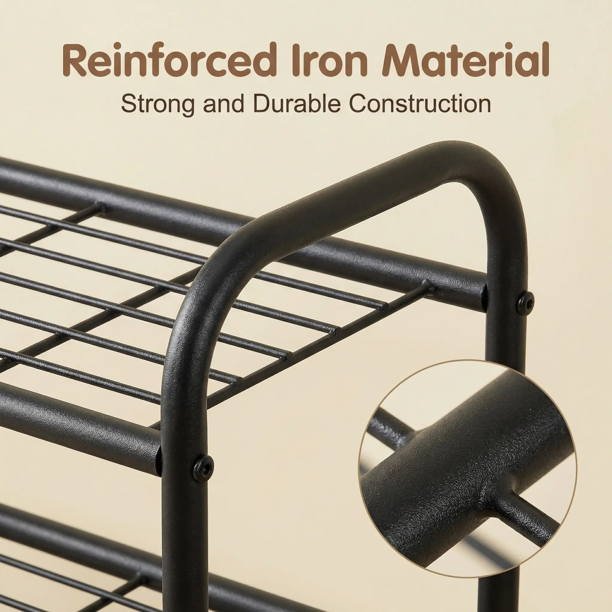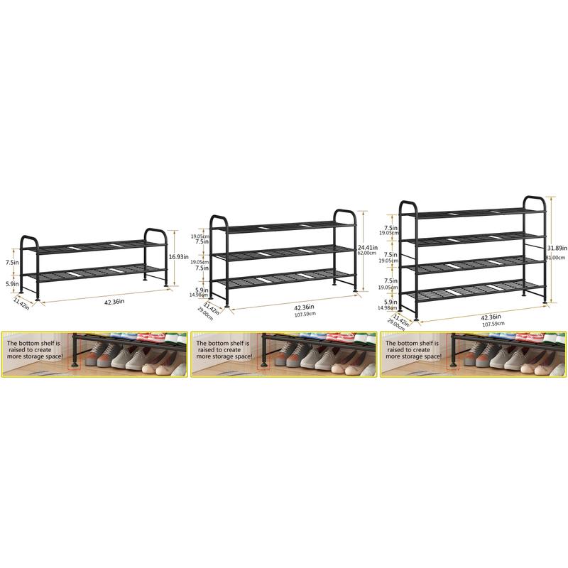 Made of iron with anti-rust spray paint, this rack is durable and has a strong load-bearing capacity. It can last for many years, ensuring reliable storage for your shoes and other items. The quality construction guarantees longevity and performance.