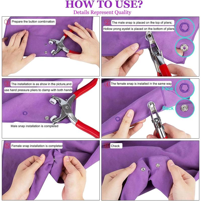 ·【Attention】If you're not good at it or use it for the first time, we suggest that you can practice with a unwanted cloth.Not suitable for thick fabrics, such as cotton-padded jackets and coats. Only suitable for single clothes, underwear, one layer of cloth, double layer of cloth and so on. The Hollow prong eyelet must on the plier side without hole. Please keep this products away from people to prevent inadvertent swallowed.