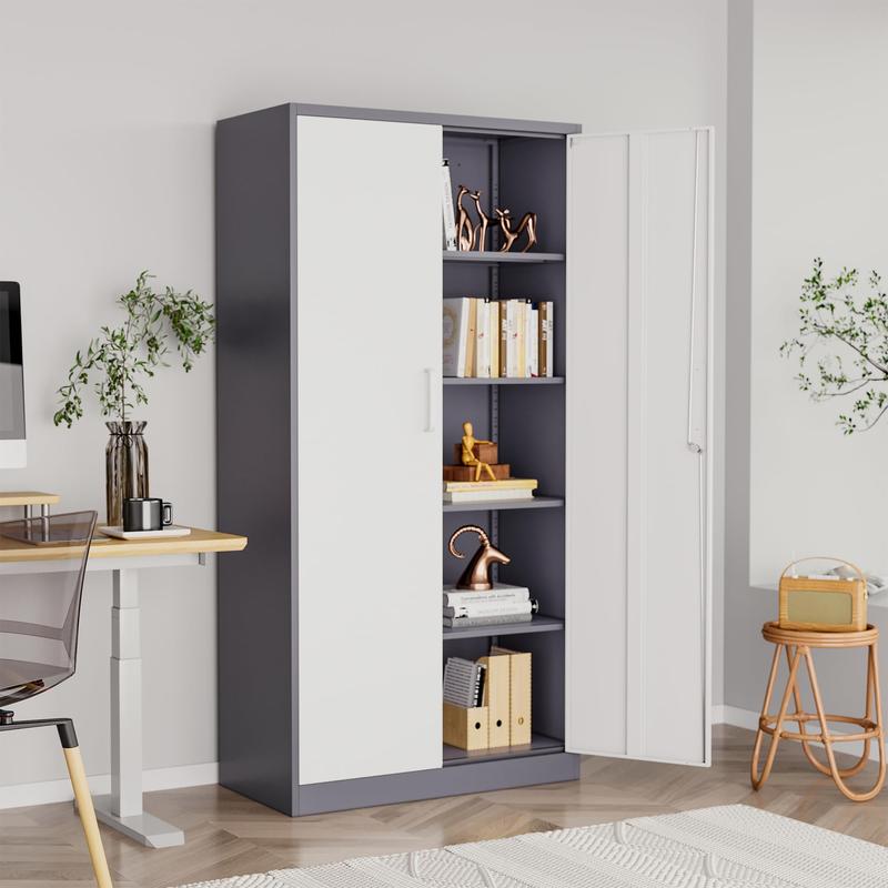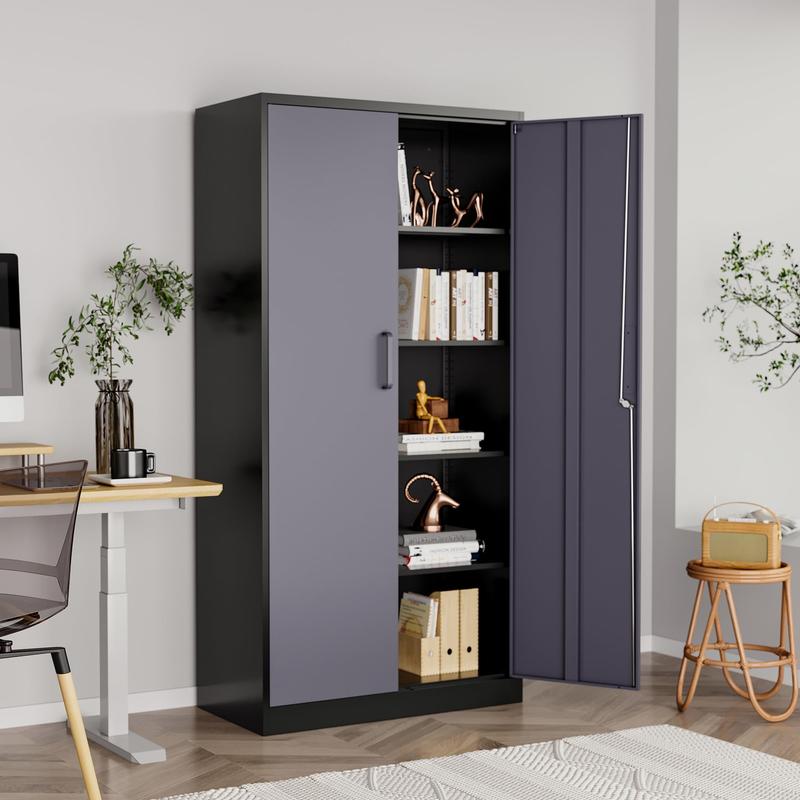 ·【Large Capacity Storage Cabine】t: 70.87''H x 31.5''W x 15.7''D Size steel storage cabinet with 4 adjustable shelves to hold items of different sizes such as office document supplies, heavy household kitchen items or garage tools. The modern home style design appearance is ideal for use in homes, offices, garages, schools, shops, warehouses or other commercial spaces.
