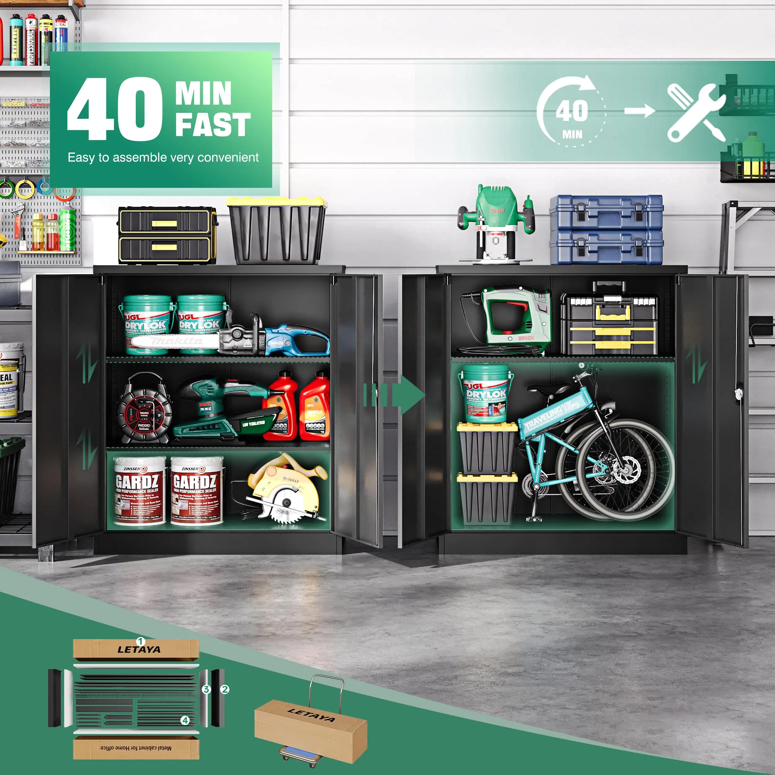 【Assembly Instructions】Metal storage cabinet provides paper and video assembly instructions,the installation can be completed in about 30 minutes.