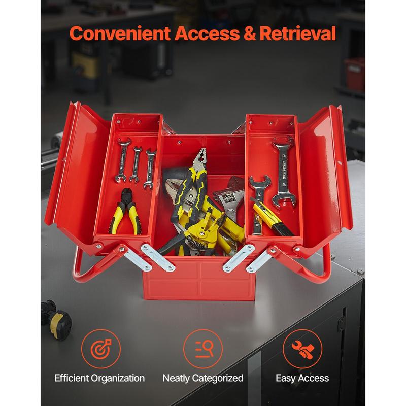 • Dual Handles for Easy Portability: The upgraded dual-handle design allows you to easily carry the metal tool box, even when it’s full of tools. The comfortable grip ensures that you won’t feel discomfort when transporting it. The handles can be placed to the sides when opening, ensuring no obstruction when accessing items.