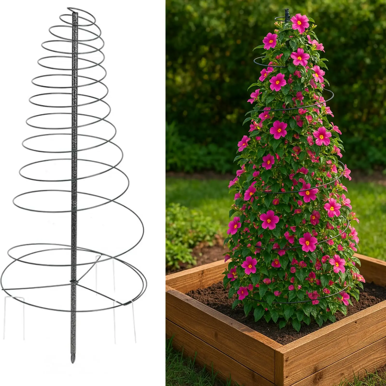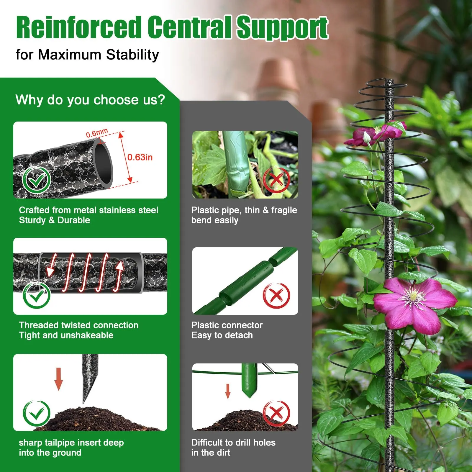 ·Spiral Design for Natural Plant Growth, Supports Climbing Vines Effortlessly - Designed with a unique spiral structure, this trellis for climbing plants outdoor supports the natural growth pattern of climbing plants. The tower-style plant support allows vines to climb higher naturally, providing both beauty and functionality for your garden