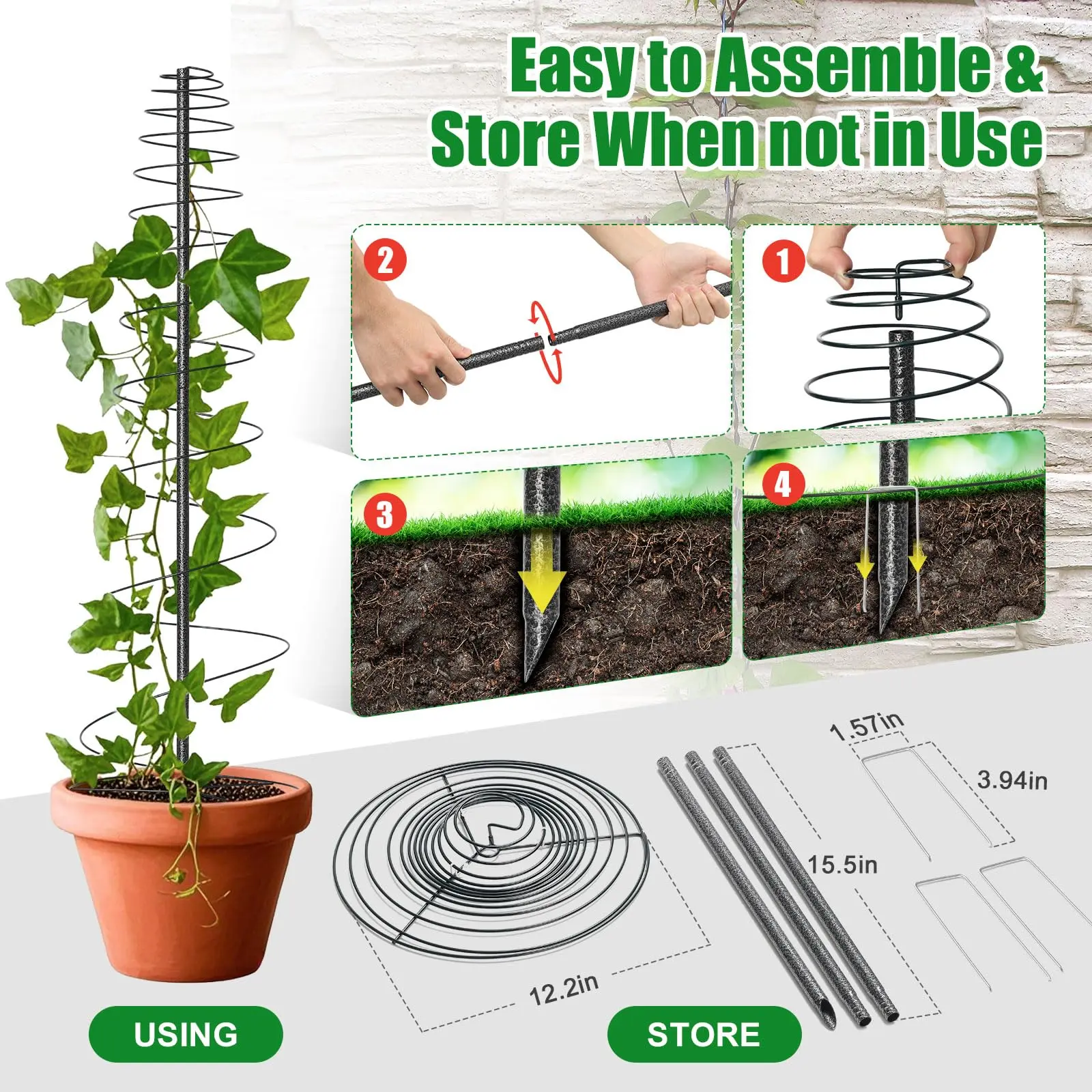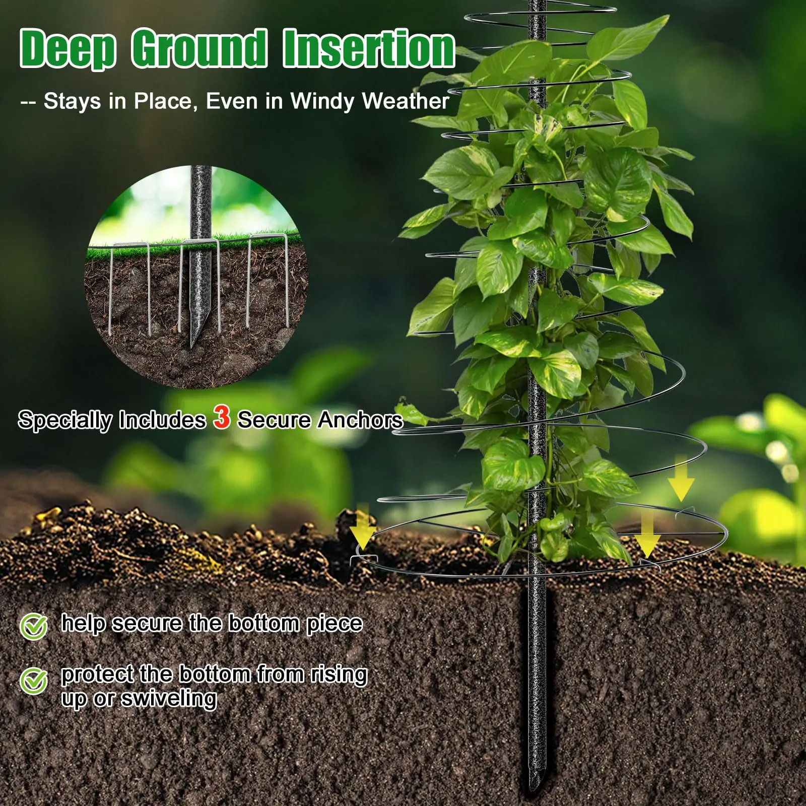 ·Secure Anchors to Ensure No Wobbling, No Lifting - This plant trellis includes three reinforced ground stakes, providing extra stability and ensuring the spiral frame remains firmly secured. Say goodbye to wobbly supports, your plants will grow safely and steadily