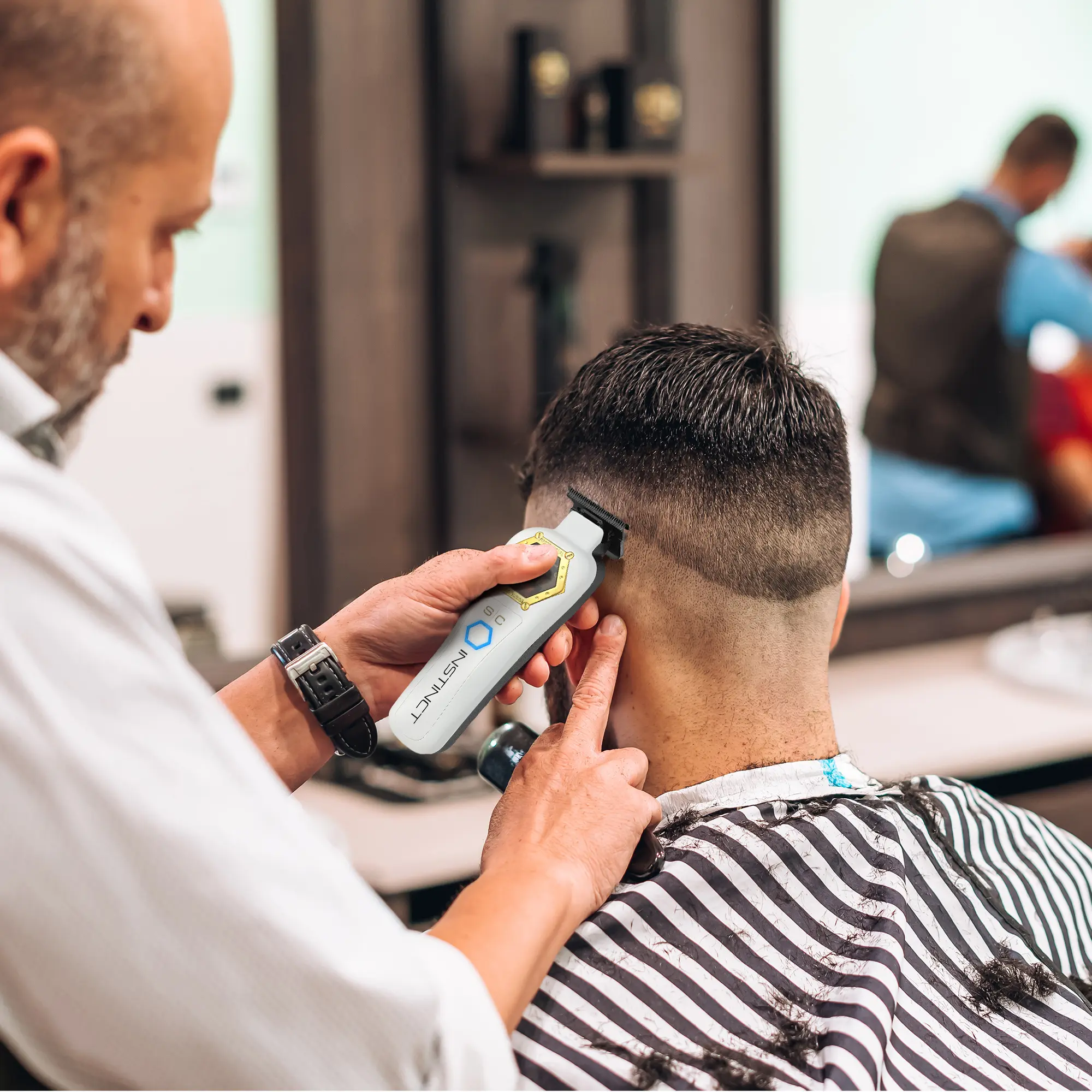 The Instinct Metal Edition features a IN2 Vector motor with intuitive torque control. It delivers 9,500 strokes per minute, adapting torque for seamless cutting of bulk and thick hair. This ensures smooth, snag-free performance. The fixed Black Diamond X-Pro Wide blade and "The One" deep cutter provide precise, smooth cuts and sharp lines.