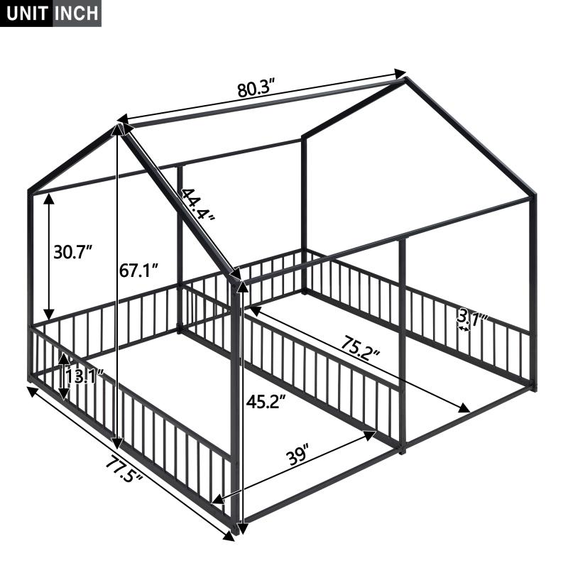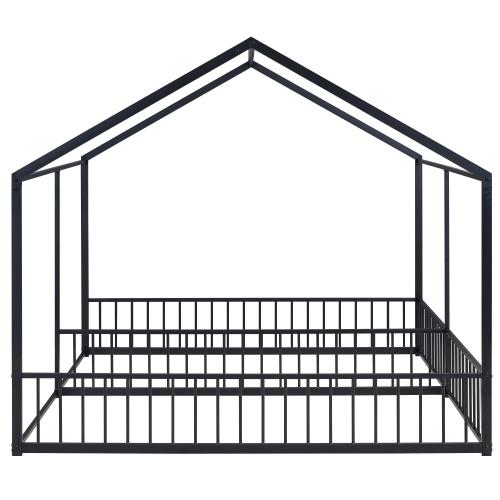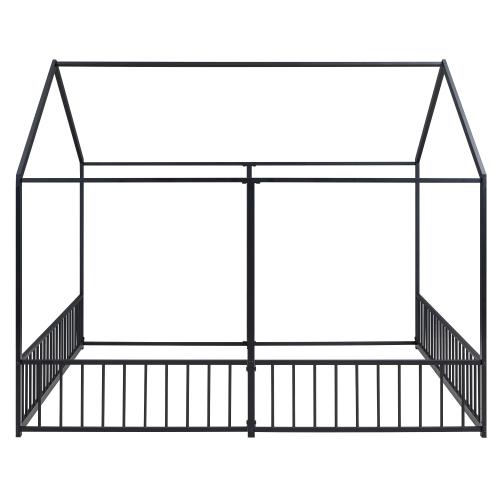 [Bellemave]Twin/Full  Size Metal House Bed with Fence and Door, Black